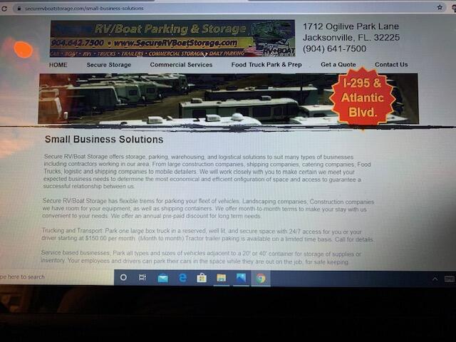 Welcome to Jacksonville Florida's first class secure RV and boat storage facilility. We take pride in serving customers with a personal touch: Secure Storage Service, High Security, Easy Vehicle Parking, Dump Station, Propane and Detailing are just the beginning of our complete RV experience at Secure RV/Boat Storage. Why Secure RV/Boat Storage? It is simple. We understand the value of secure RV, boat, & car storage. We also make drop off and pick-up very easy for all of our storage customers. Drop off your vehicle or boat in wide open spaces of our staging area and we will valet your RV boat or vehicle into our secure storage area. Customers never have to worry themselves with "Who hit my RV while it was stored"? Customers never have to...