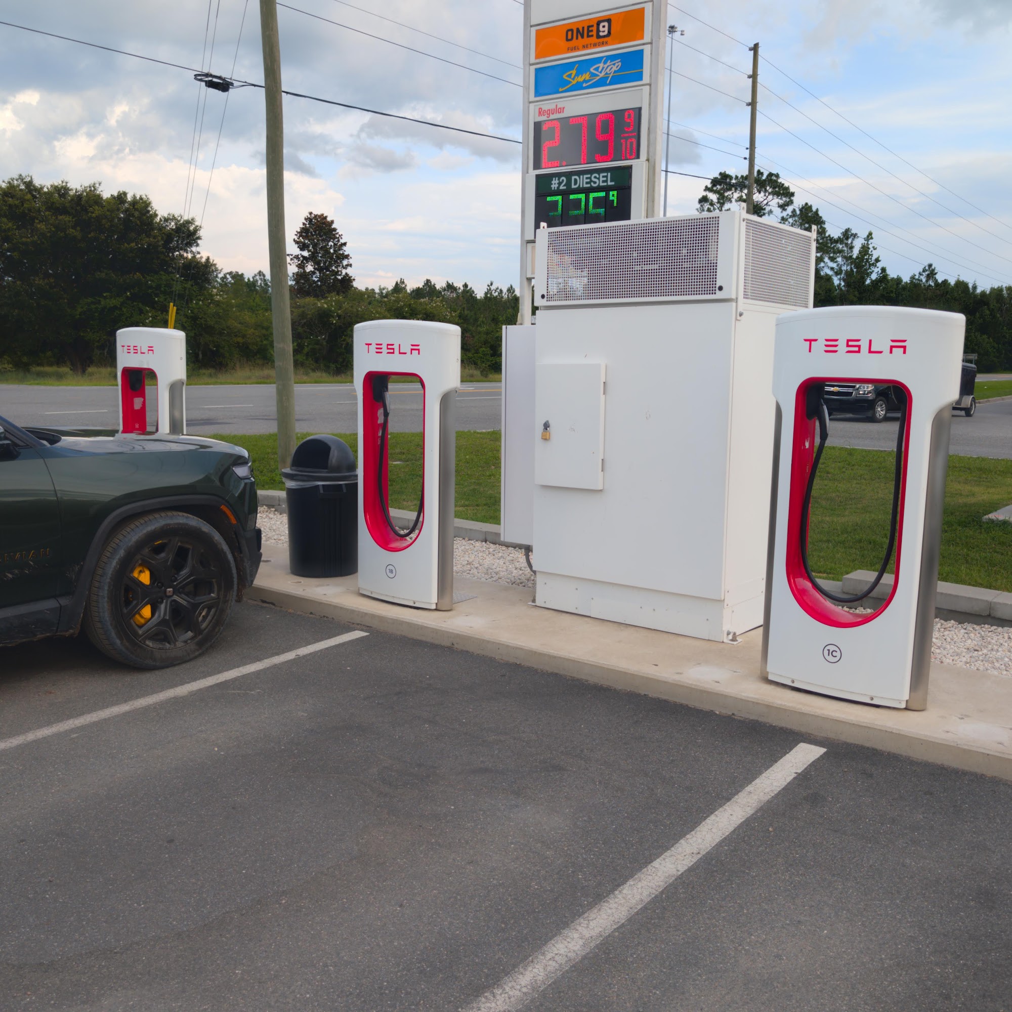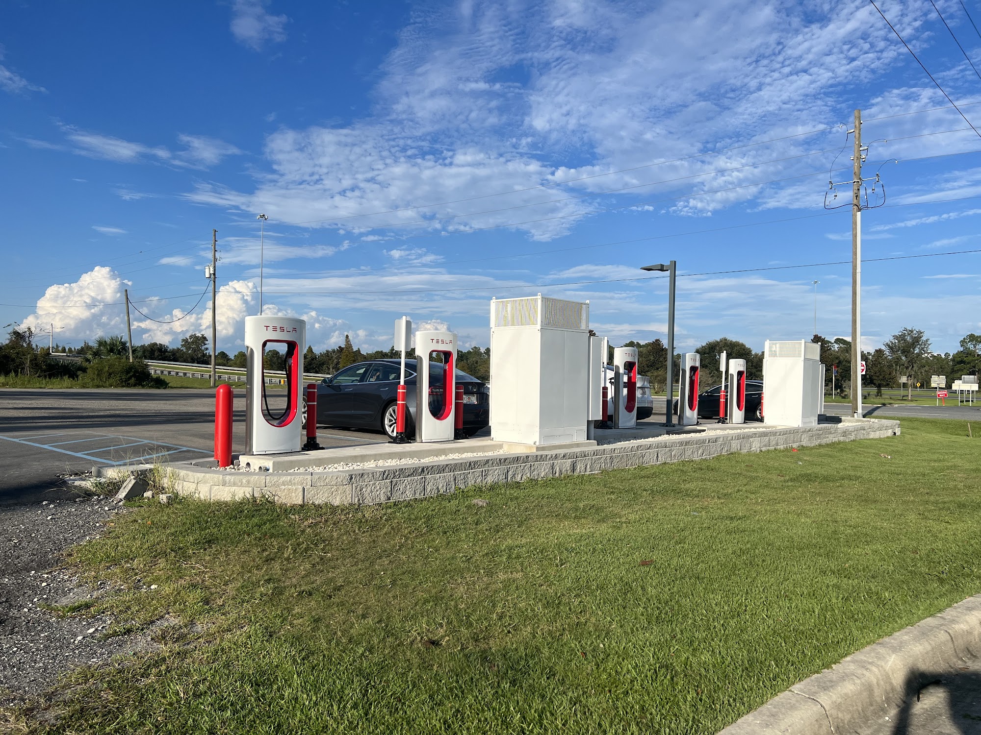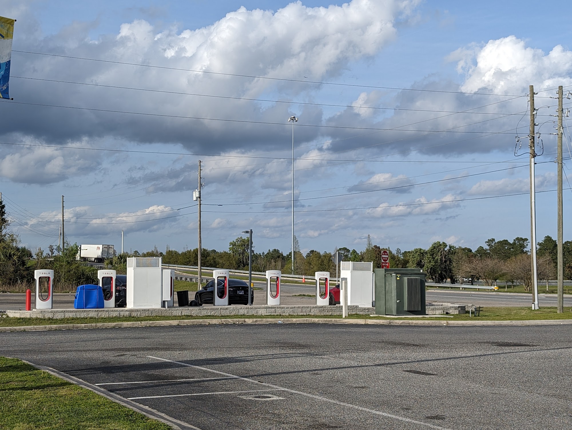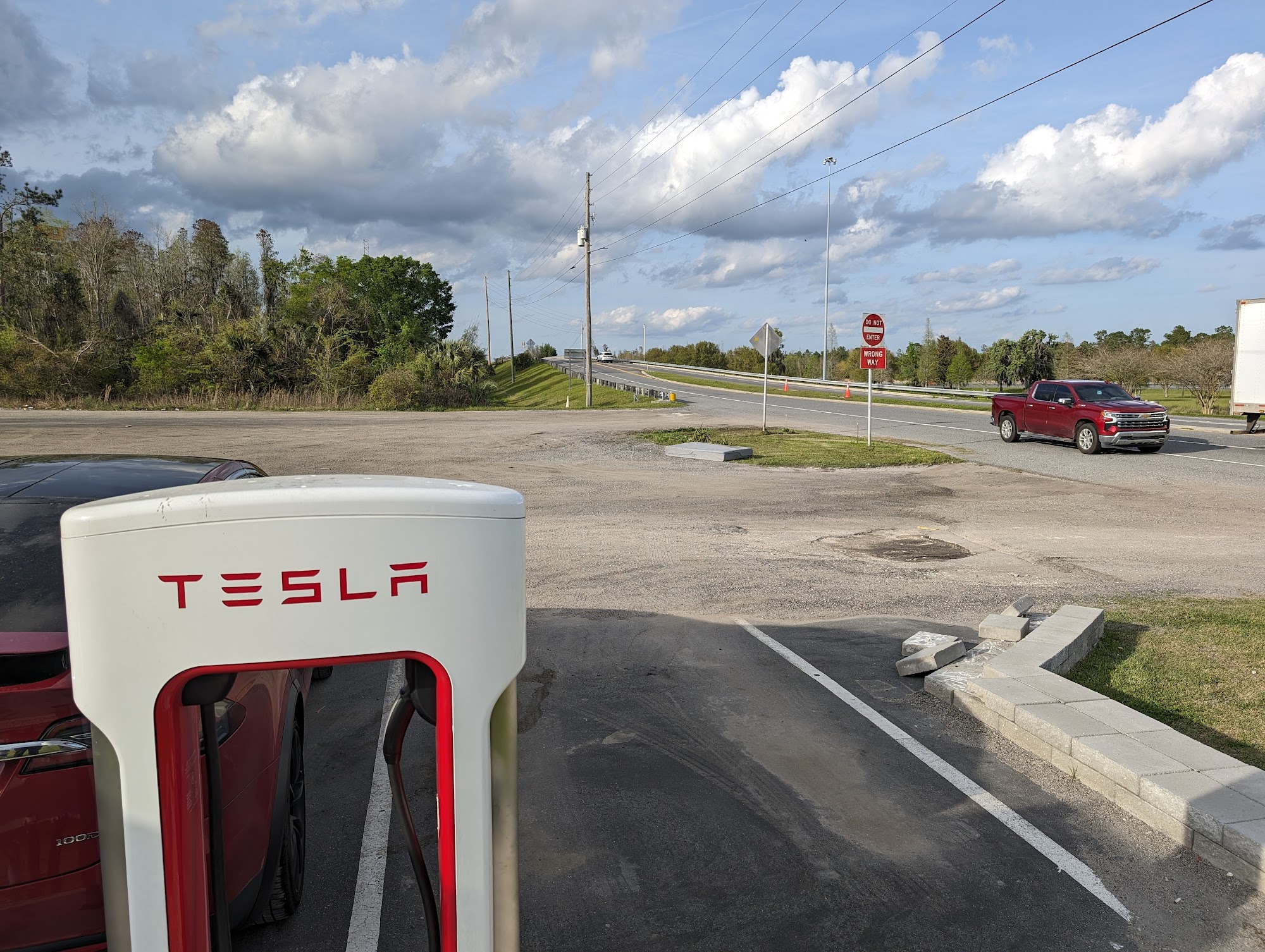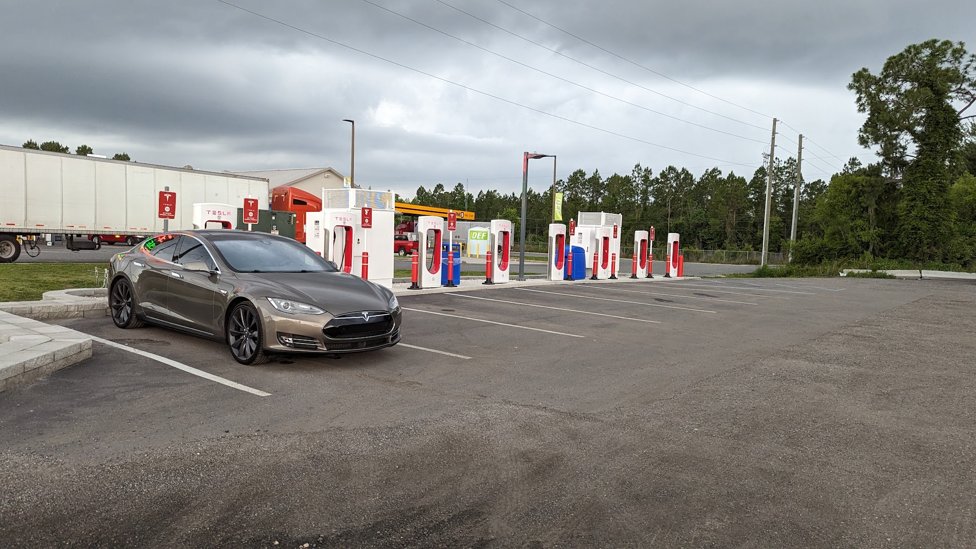 Chargers work, but it's a dusty gravel lot with semi truck parking.