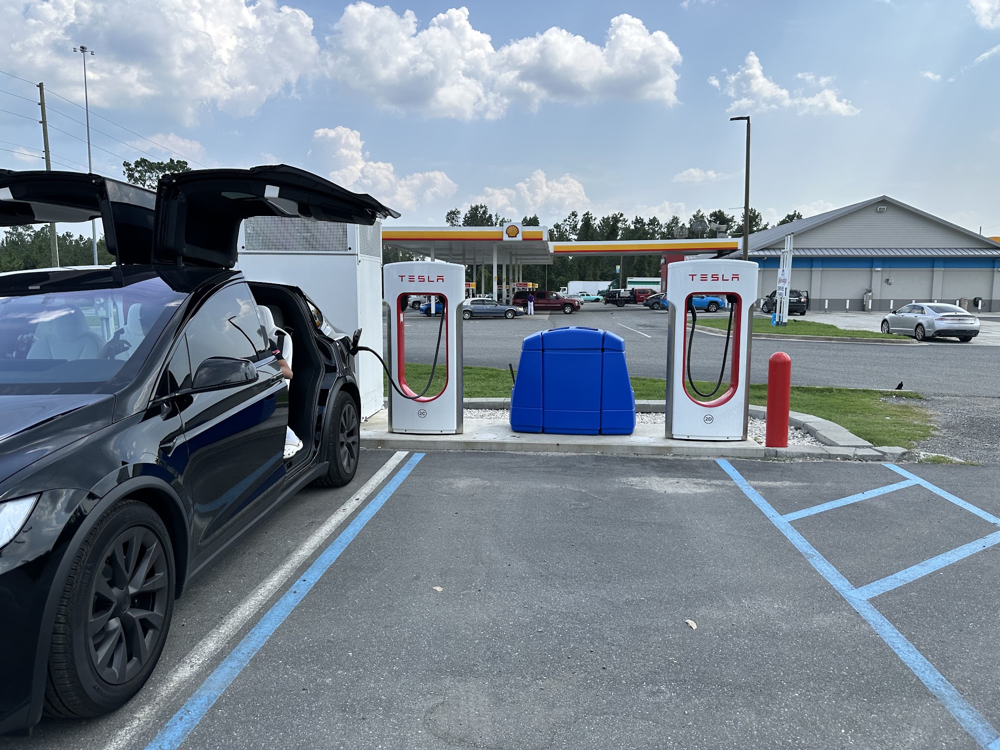 Charging station was sick gas station not sketchy at all super friendly plus surprise Wendy’s attached to the gas station very clean friendly staff at Wendy’s definitely will stop again if needed.
