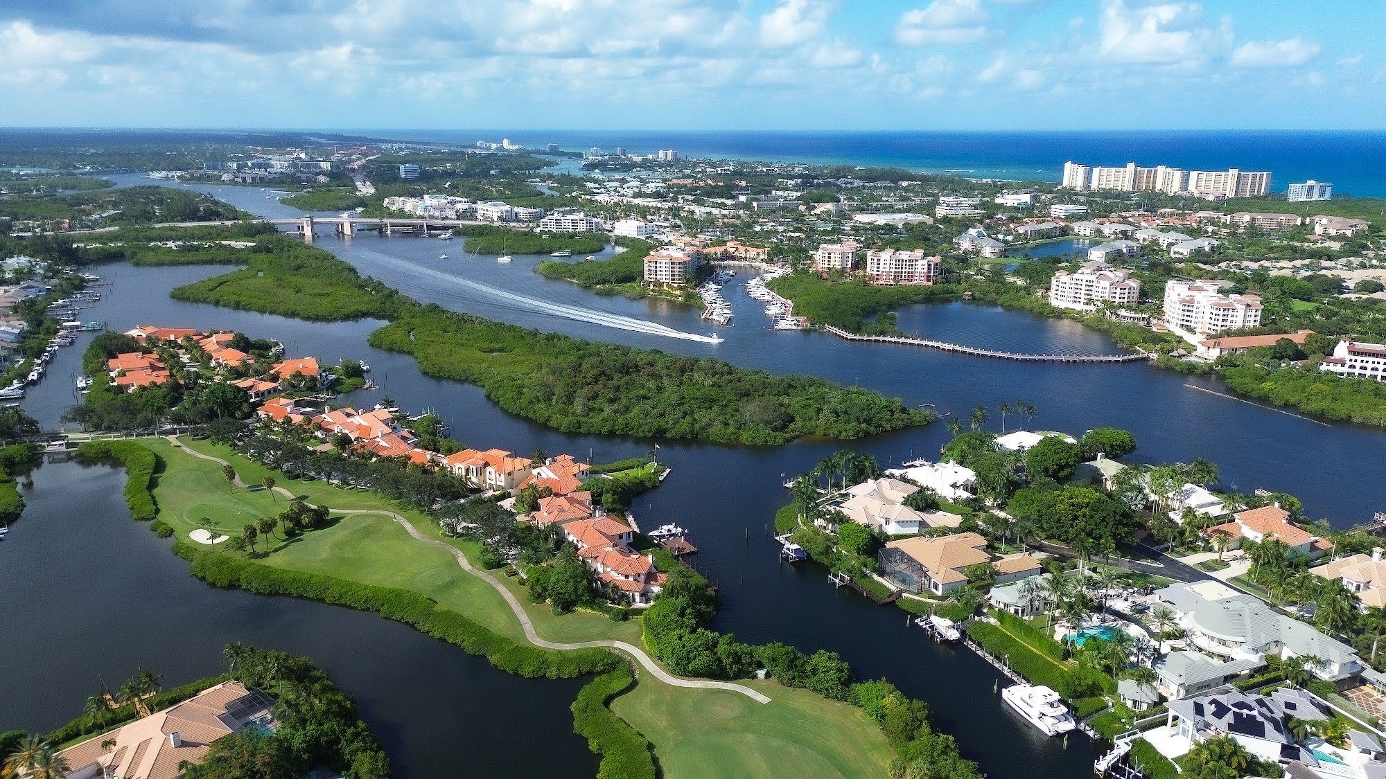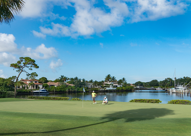 The closest full service private golf, tennis, pickleball, gym and spa community at Jupiter inlet. With three 18 hole championship golf courses. One that requires golf carts to take a ferry to finish out hole 17. Abuts the Intercostal water way and within 1 mile to the beach. Homes $35M - $800k, many with boat slips!!.