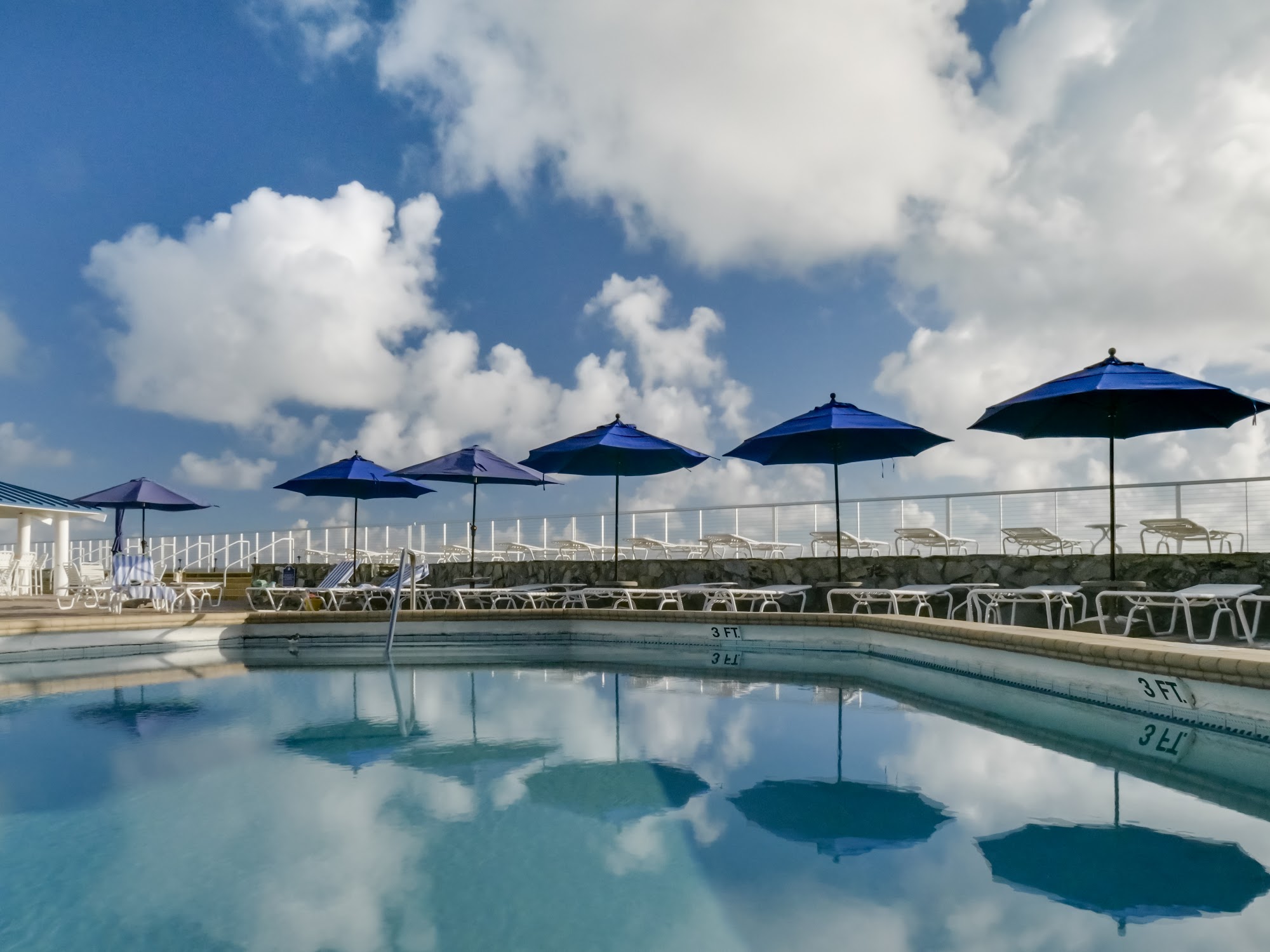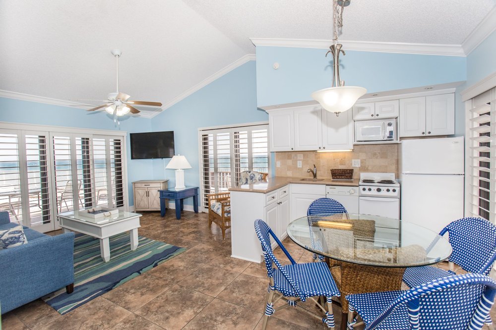 The facilities are clean and well kept. Pool is sparkling clean. Beach access right from your door. Loved it.