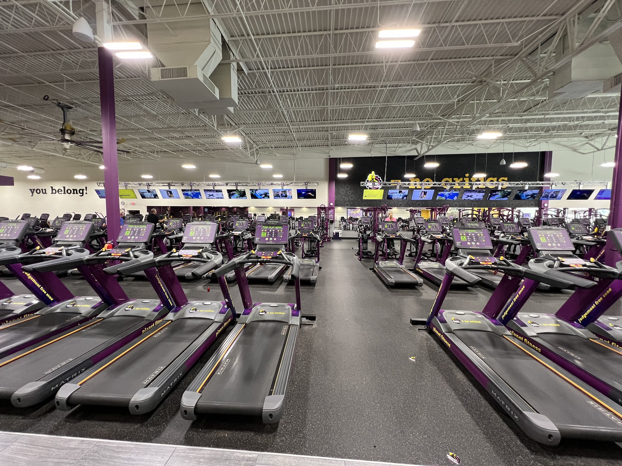 Planet Fitness is a welcoming and clean gym with a friendly staff that is always ready to help. The equipment and facilities, including the bathroom and lockers, are well-maintained and clean. The gym has a long layout, with most machines conveniently located near each other in the back, and duplicates of the same machines for added convenience. The bathroom is spacious and has a lot of lockers, ensuring comfort for all members. Light from the front of the building brightens the middle of the room. The staff is professional, kind, and helpful, often going above and beyond to ensure a positive experience for members. Reviews highlight the knowledgeable and supportive instructors, such as Aiden, who provide effective classes and personalized tips. With a supportive and energetic atmosphere, members are kind and courteous to one another. Overall, Planet Fitness is a great choice for those seeking a comfortable and motivating workout environment, with added perks like Hydro chairs and tanning beds for Black Card members.