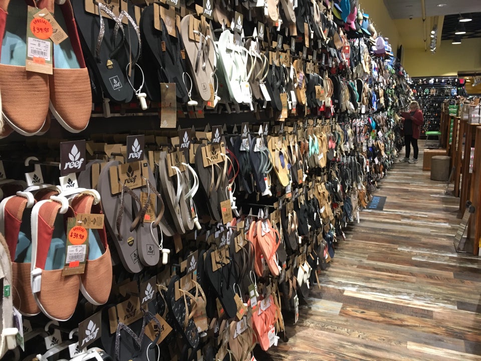 Sandal Factory is a premier destination for casual and outdoor sandals in South Florida and the Florida Keys, with stores all over US-1. Since its original store opening in 1990, it has been a well known destination. This large brick and mortar store is well stocked. It is not only a sandal place; here you can get shirts, shorts, bags, sunglasses, and pretty much anything beach related for your trip or to take home as gifts. They carry a wide range of brands like Teva, Merrell, Reef, Quiksilver, Roxy, Billabong, Sanuk, Guy Harvey, Mephisto, and Birkenstock, and also offer a sizable selection of closed-toe shoes like Hey Dudes. The store has a great selection of sizes ranging from small to large, though plus sizes are harder to find. Prices vary, with sandals often in the $40 to $150 range, while t-shirts and little trinket stuff are decently priced. Some note that a promotional sign can be misleading, calling it a tourist trap. However, it is still recommended as a nicer, more organized store with a wide variety of almost anything you would need for the beach, from boating to hiking or lounging by the pool.