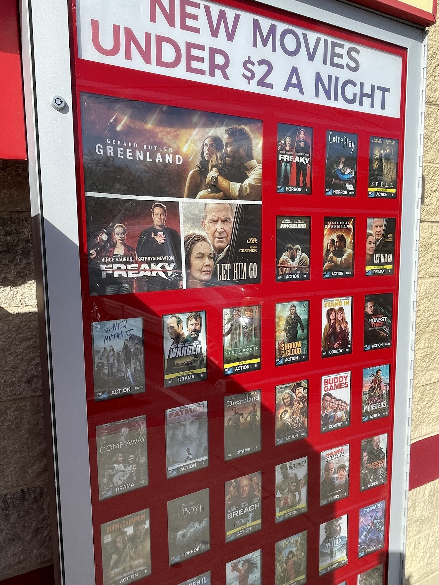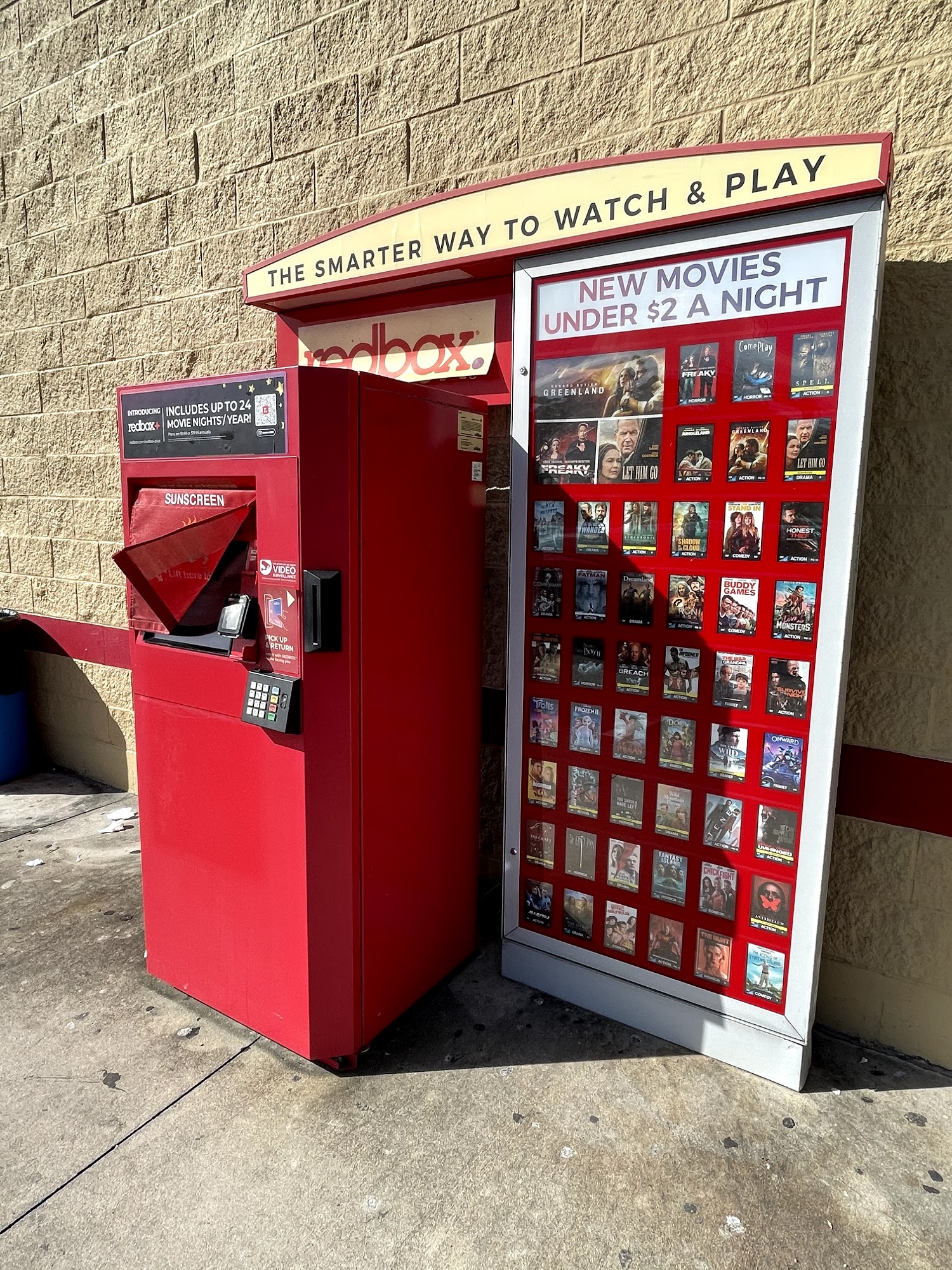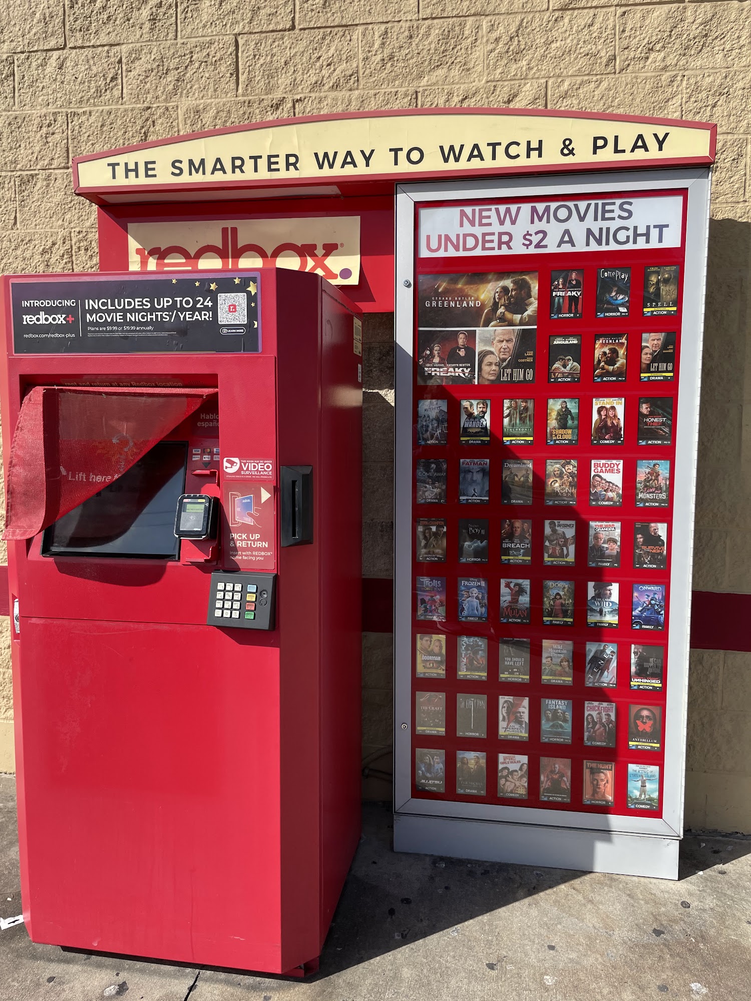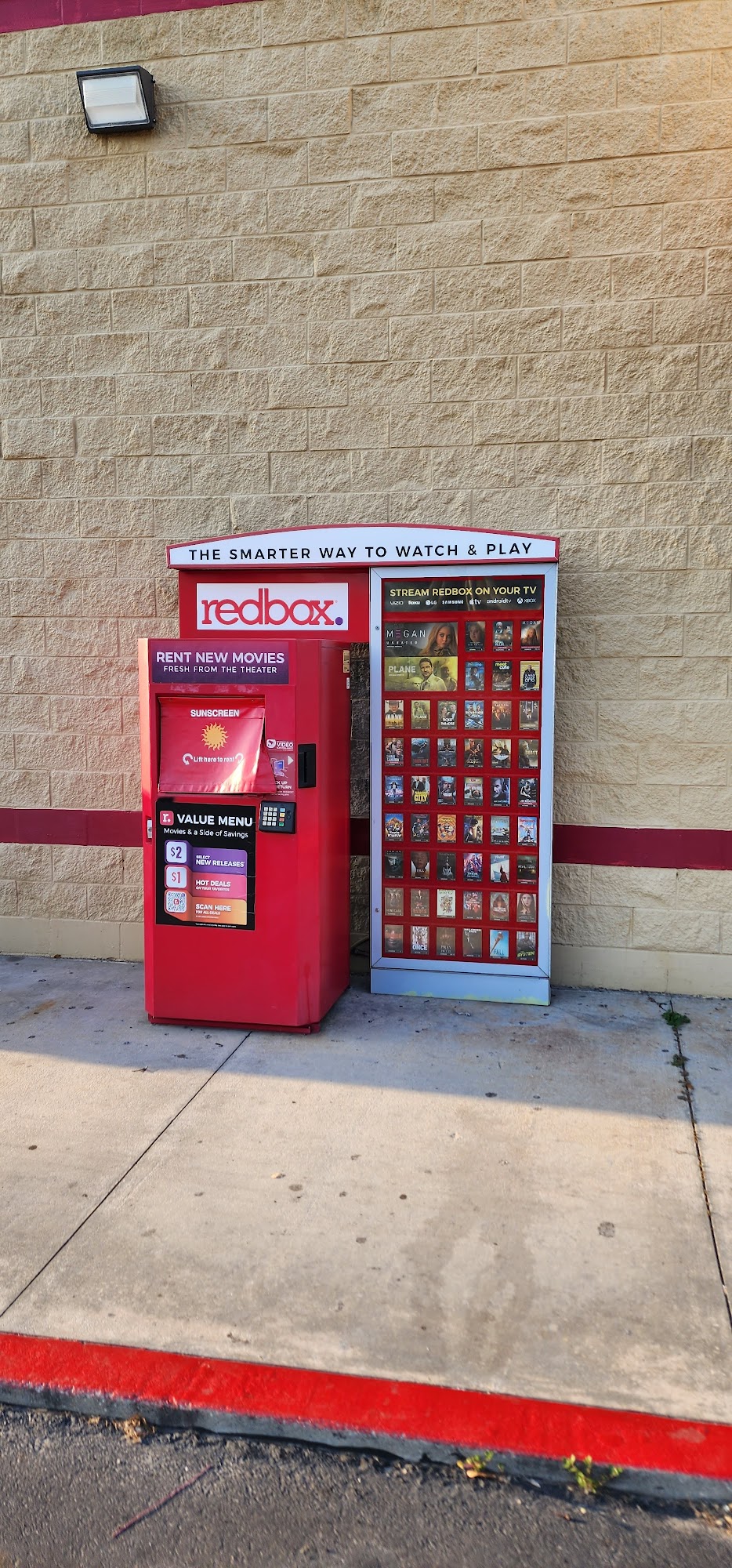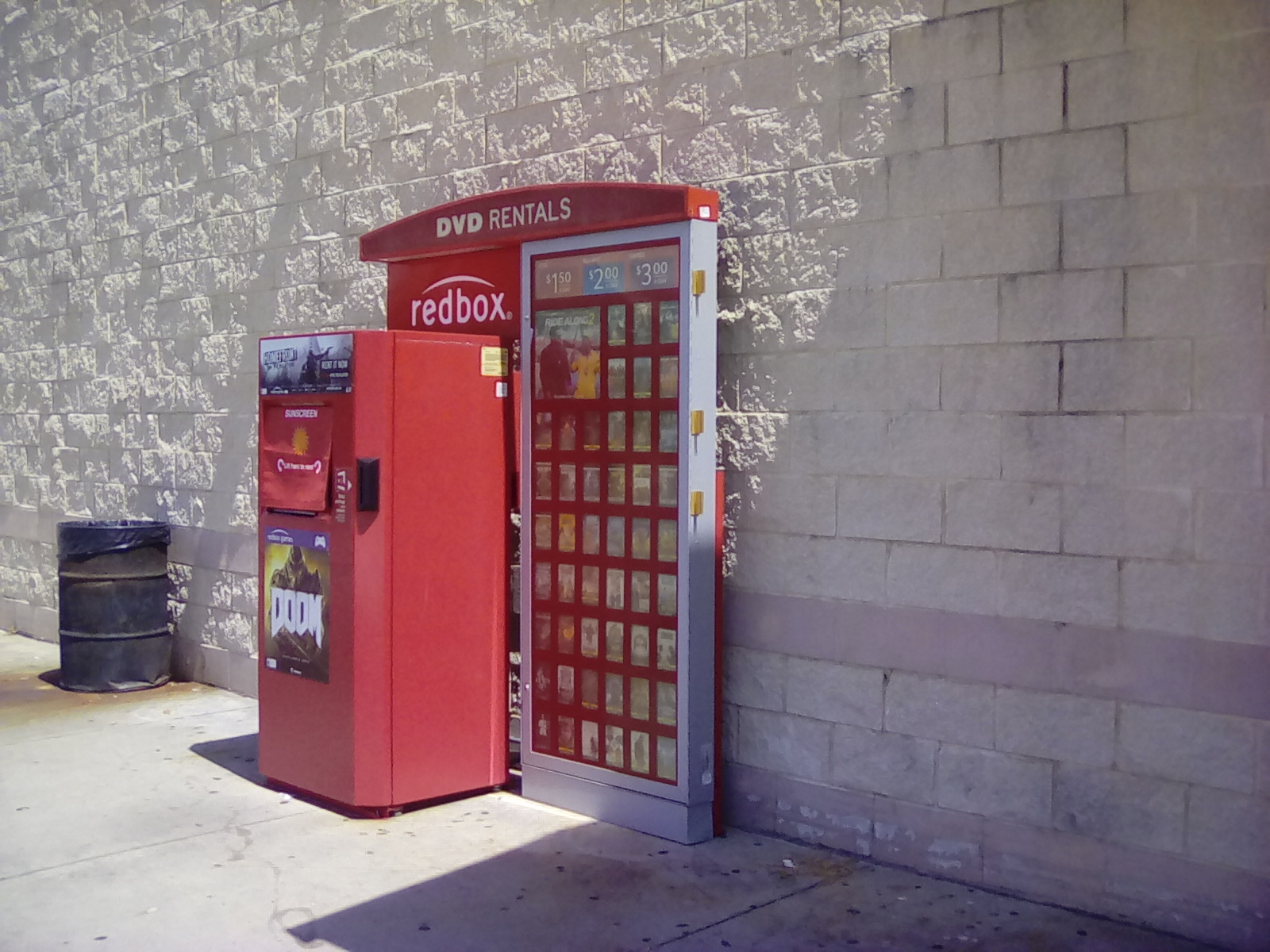 One of two locations in LaBelle, conveniently located at the Family Dollar store front. No shade over the machine on hot sunny days but it only takes a few minutes to pick up a video, so no real problem.