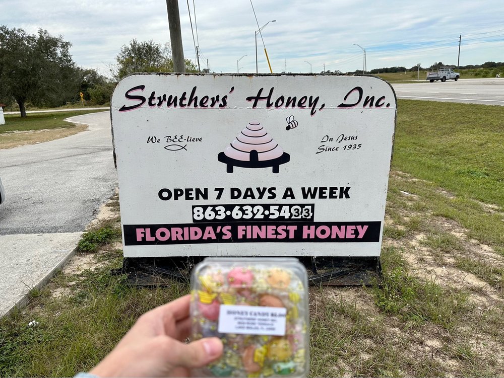 Struther's Honey is a small shop offering a unique experience. It sells very good, awesome, and best tasting honey, including a memorable orange blossom honey described as a game changer. The honey comes in several sizes and containers. The business operates on an honor system and is cash only. Visitors can see pictures of the store's history. The product is highly recommended, with customers suggesting to grab a couple bottles.