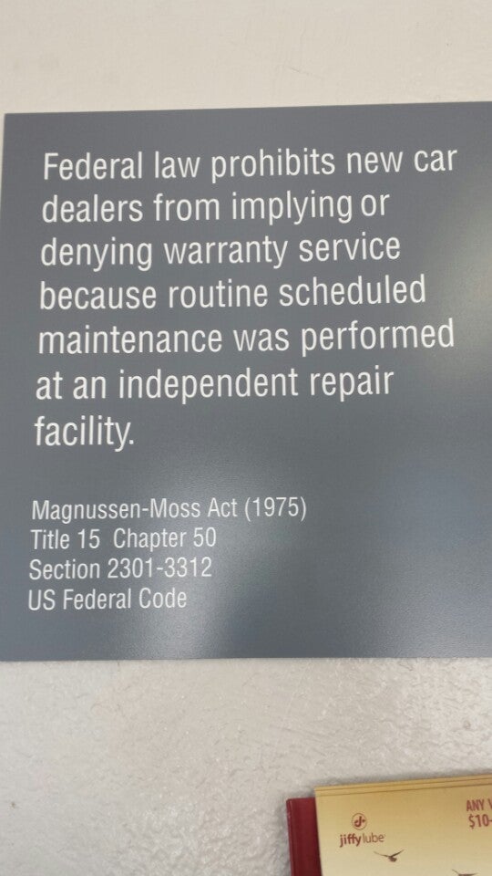 Jiffy Lube offers quick and convenient automotive maintenance services, including oil changes, windshield wiper blades, tire rotation, and battery replacements. The company follows manufacturer recommendations for all vehicle makes and models, ensuring quality service. Customers appreciate the fast service, often being in and out within 15 to 30 minutes, even as walk-ins. Staff members are described as friendly, kind, and knowledgeable, with many customers highlighting the professionalism of employees like Ricardo, Robert, and others. The service center maintains a welcoming atmosphere, with some staff offering beverages and making customers feel comfortable while waiting. Jiffy Lube also keeps detailed service records in a nationwide database, providing consistency across locations. Overall, the business is highly recommended for its efficiency, good prices, and friendly staff, making vehicle maintenance a hassle-free experience.
