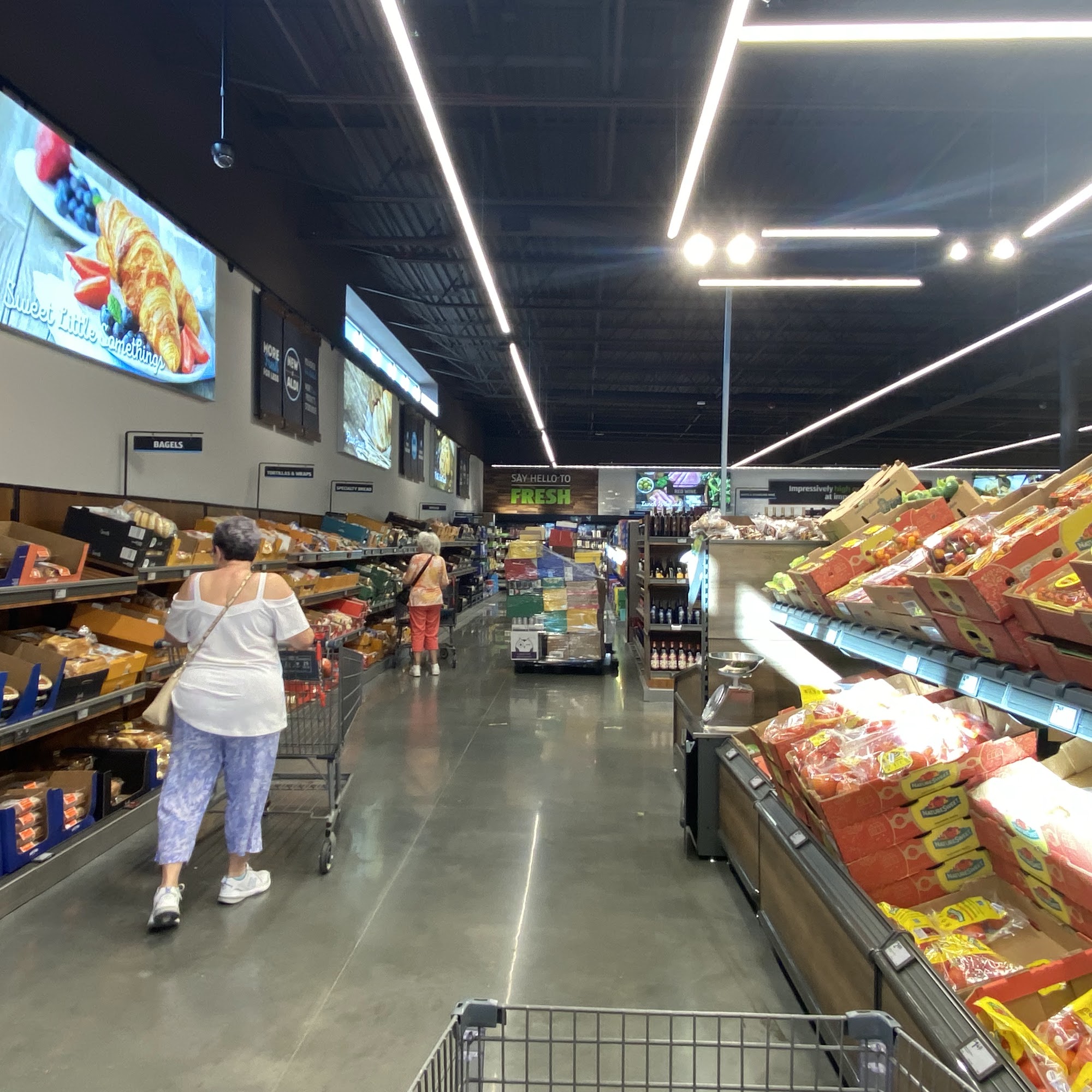 Aldi is described as a great place for grocery shopping. Many name brands are sold at about half the price of other stores, so customers can save money on good items. The store is basic but offers fresh produce at low prices, and the guacamole is praised as very good. Employees are polite and helpful, and the store is clean and friendly. Customers can bag their own groceries, which saves money, and a cart can be rented for 25 cents and refunded when returned. The space is not crowded, making it easier to shop and find fresh ingredients for dinner or desserts for under $20. Self‑checkout works quickly and flawlessly, and customer service is nice. Specialty select items such as brownies (a Ghirardelli knockoff) and LiveGFree gluten‑free cakes, brownies, and corn bread are noted as amazing. Specialty select sliced Italian and sourdough breads are fantastic, and even the processed white bread is tasty. Cheeses are very good, and fresh potatoes and other produce are usually very good. The quarter system for carts encourages social interaction, adding a pleasant start to the day. Overall, Aldi is a great addition to the area.