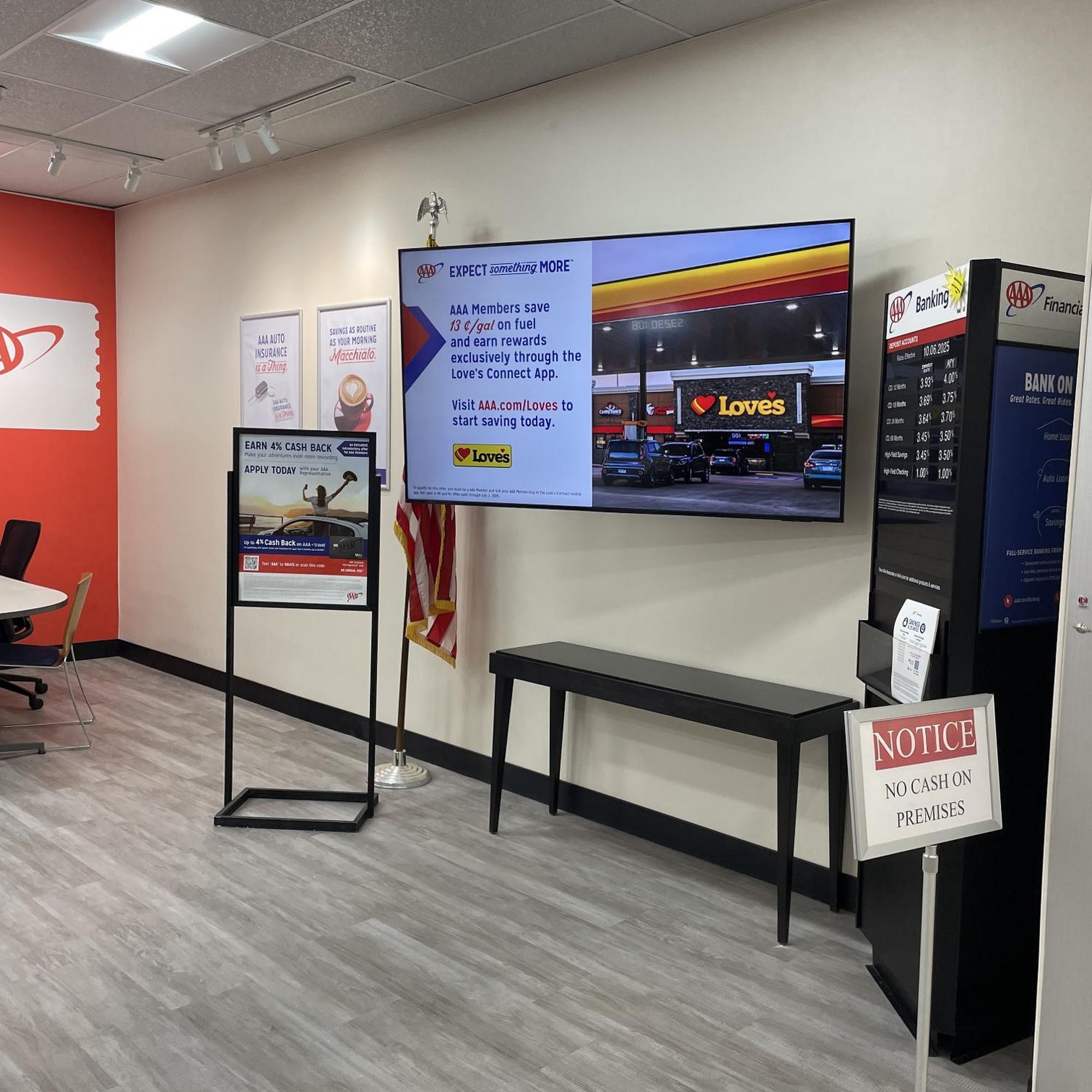 Dudn't know my Tripple A location had moved into Walmart. Found out that I can no longer pick up gift cards because would conflict with Walmart selling them. That means that now I would have to double driving distance to Lady Lake in order to save a couple bucks on our renewal fee. Not worth it.