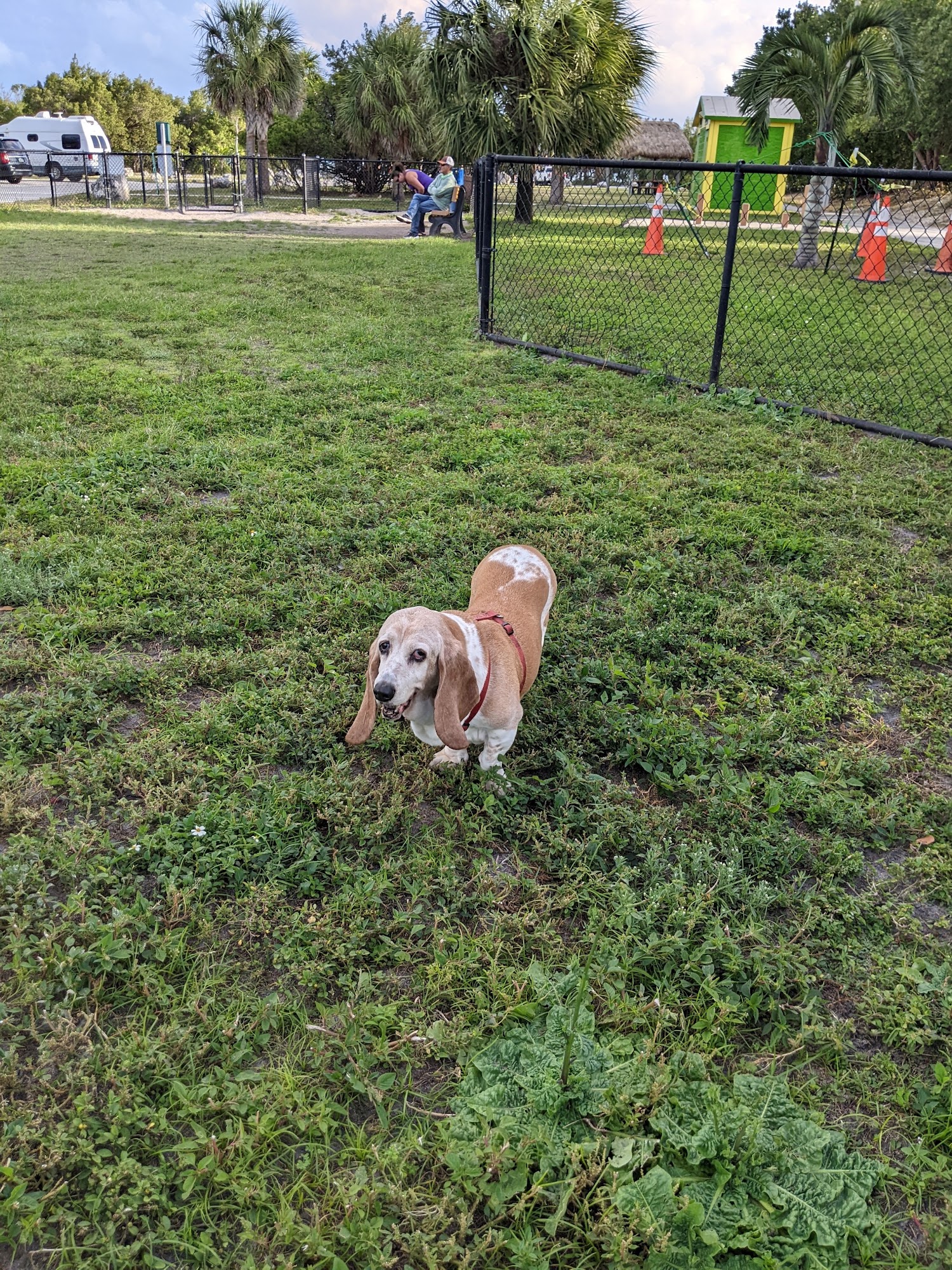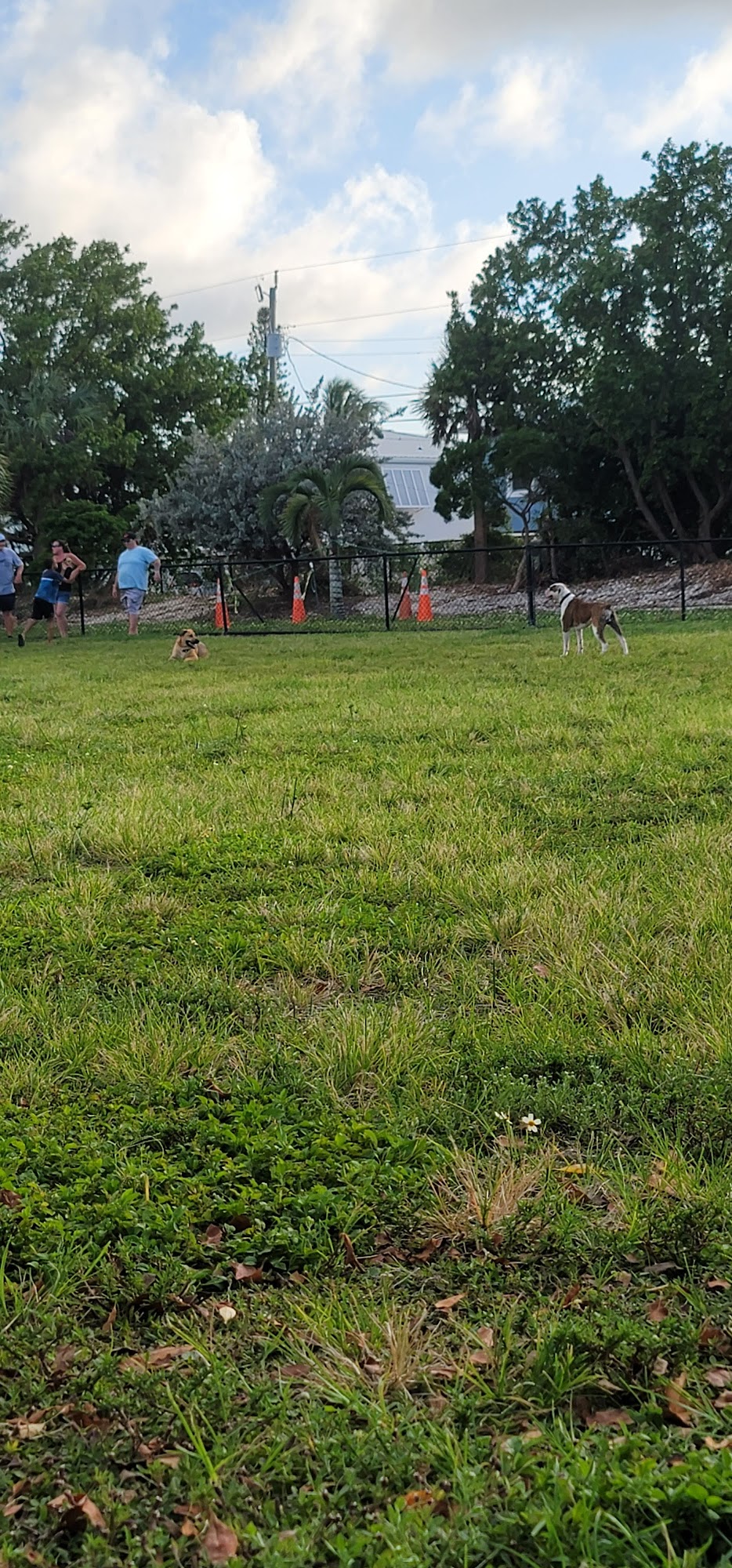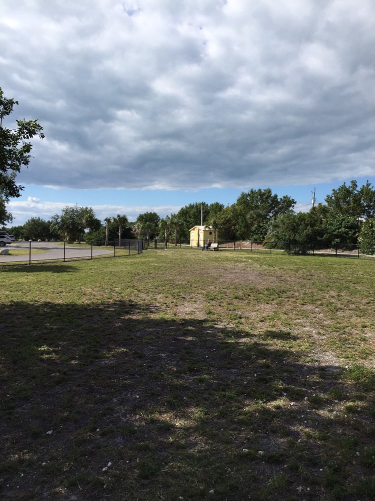 Marathon's Dog Park is a fenced, grassy area located behind city hall as part of a beautiful city park right on the water. It is a good size and generally well-maintained and clean, offering an ocean view and access for dogs to swim. The park provides a water fountain for dogs and has nice, clean public restrooms conveniently located next to it. While it is a more limited, plain space without amenities like lights, hoses, or an obstacle course, it is a great place for dogs to run off-leash, play, and explore new territory. Visitors can also enjoy the surrounding boardwalk with cabanas and picnic tables. The park closes at dusk.