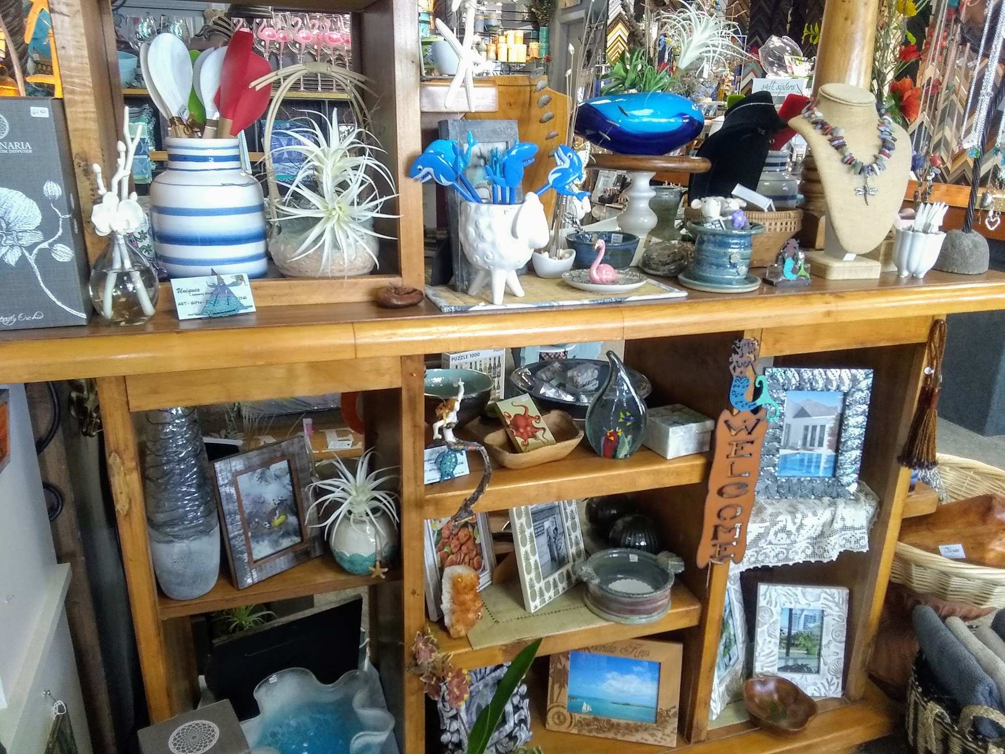 Uniques is a totally charming and delightful shop. It is a wonderful and great gift store with lovely, unique, and interesting items at all different price points. Customers find special, beautiful art, jewelry, home decor, and knickknacks that are not the same boring generic gifts found elsewhere. The owner and ladies who run the place are friendly, welcoming, and a hoot. It is a fun place to look around and the first stop for an extraordinary gift or something to remind you of the Florida Keys. Highly recommended.