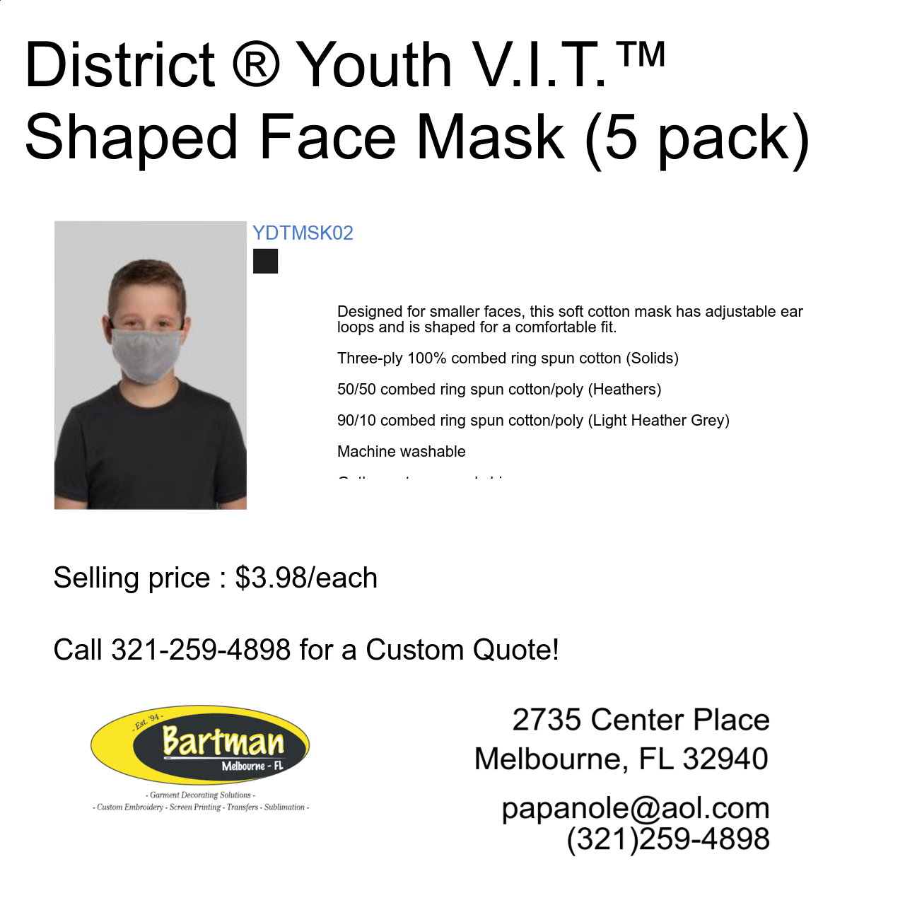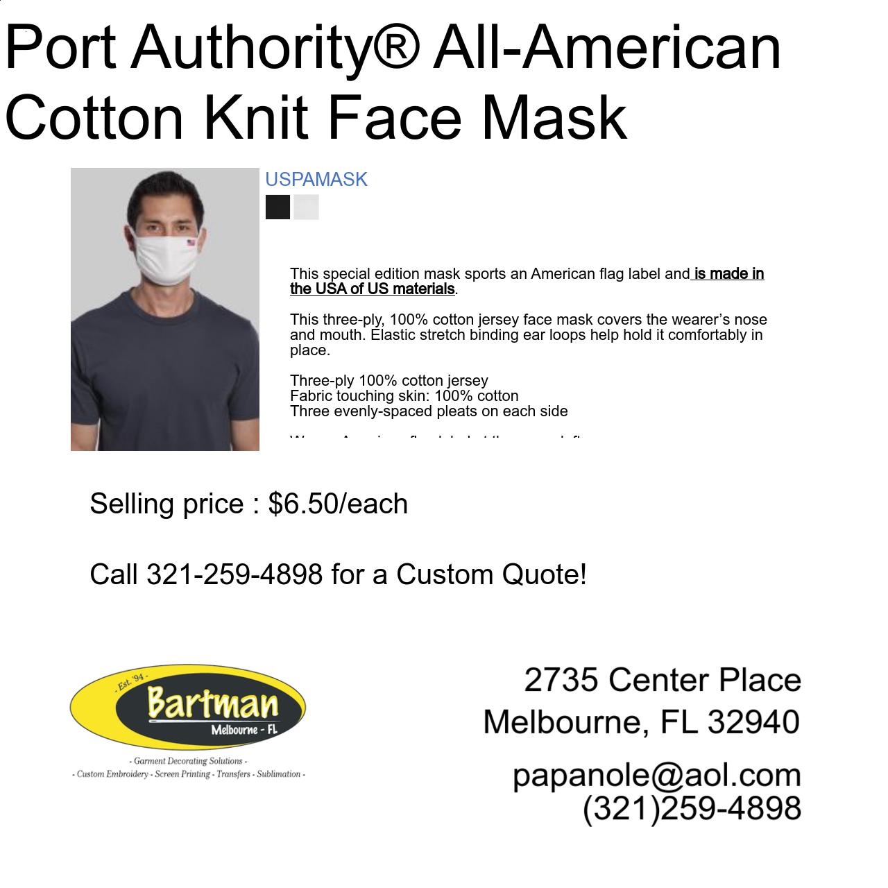I have been using Bartman for 10+ years for my business wear and personal items. Everything is done in a timely fashion and I have become really good friends with the owners. Fantastic people. Their work from renderings all the way to embroidery is spot on and I have a very high expectation. They meet it and exceed it every... read full comment