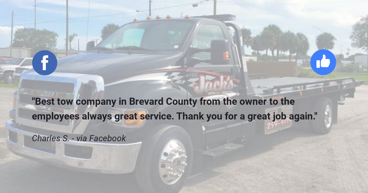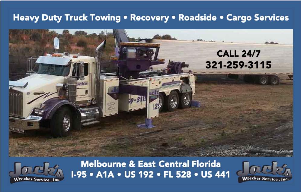 Melbourne, FL towing provider Jack's Wrecker Service offers 24-hour towing and roadside services in Melbourne, FL & the Space Coast along I-95 from St Cloud to Vero Beach, FL. They have delivered expert car and heavy truck towing, roadside, recovery and heavy hauling since 1977 and have over 250 years of towing and recovery on staff ready to serve you. As East Central Florida's heavy duty towing and recovery specialists, you can trust Jack's to deliver the best local Melbourne towing around for all cars and heavy duty trucks.
