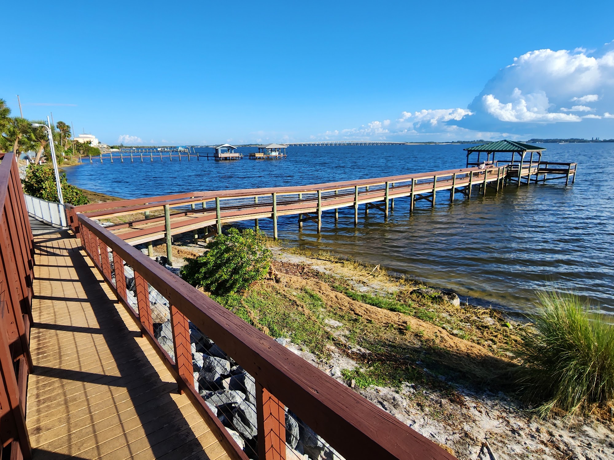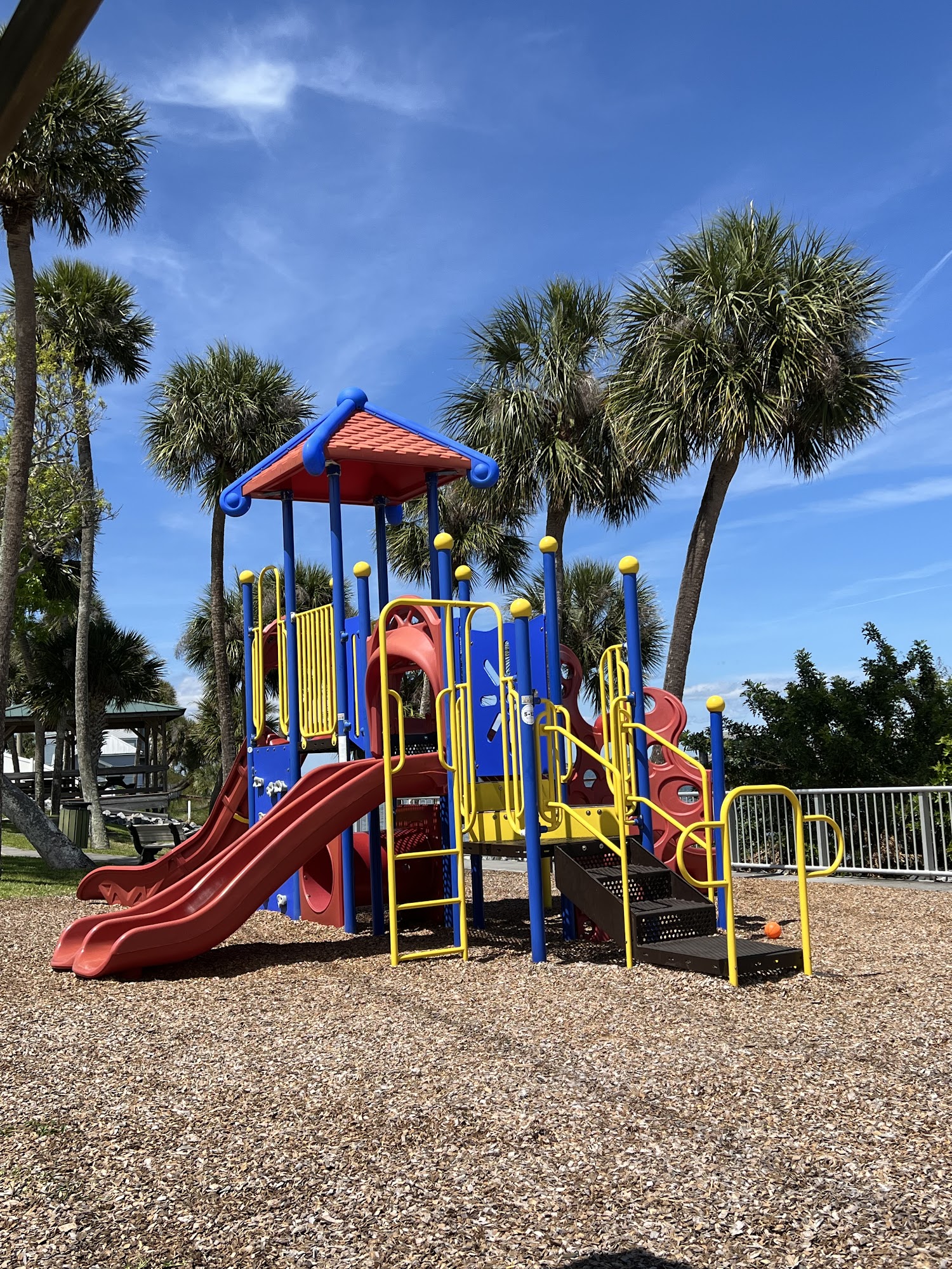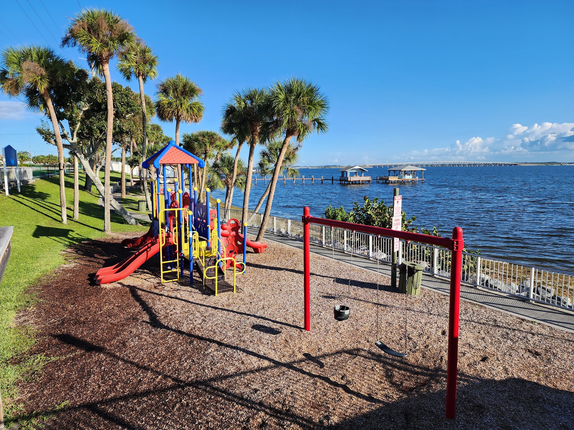 Shore Side Park is a charming and well-maintained location perfect for relaxation and recreational activities. Situated next to a fishing pier, it offers a lovely view of the riverside, attracting many birds and fish, making it an excellent spot for fishing. The park features a small but colorful playground with swings, slides, and a climbing wall, ideal for younger children. There are three pavilions with picnic tables, though there are no grills and restroom facilities are not available. The park is tranquil, with limited parking that can be tricky to navigate. Overall, Shore Side Park is a wonderful place for families to enjoy outdoor activities, from fishing to picnicking, in a peaceful setting.
