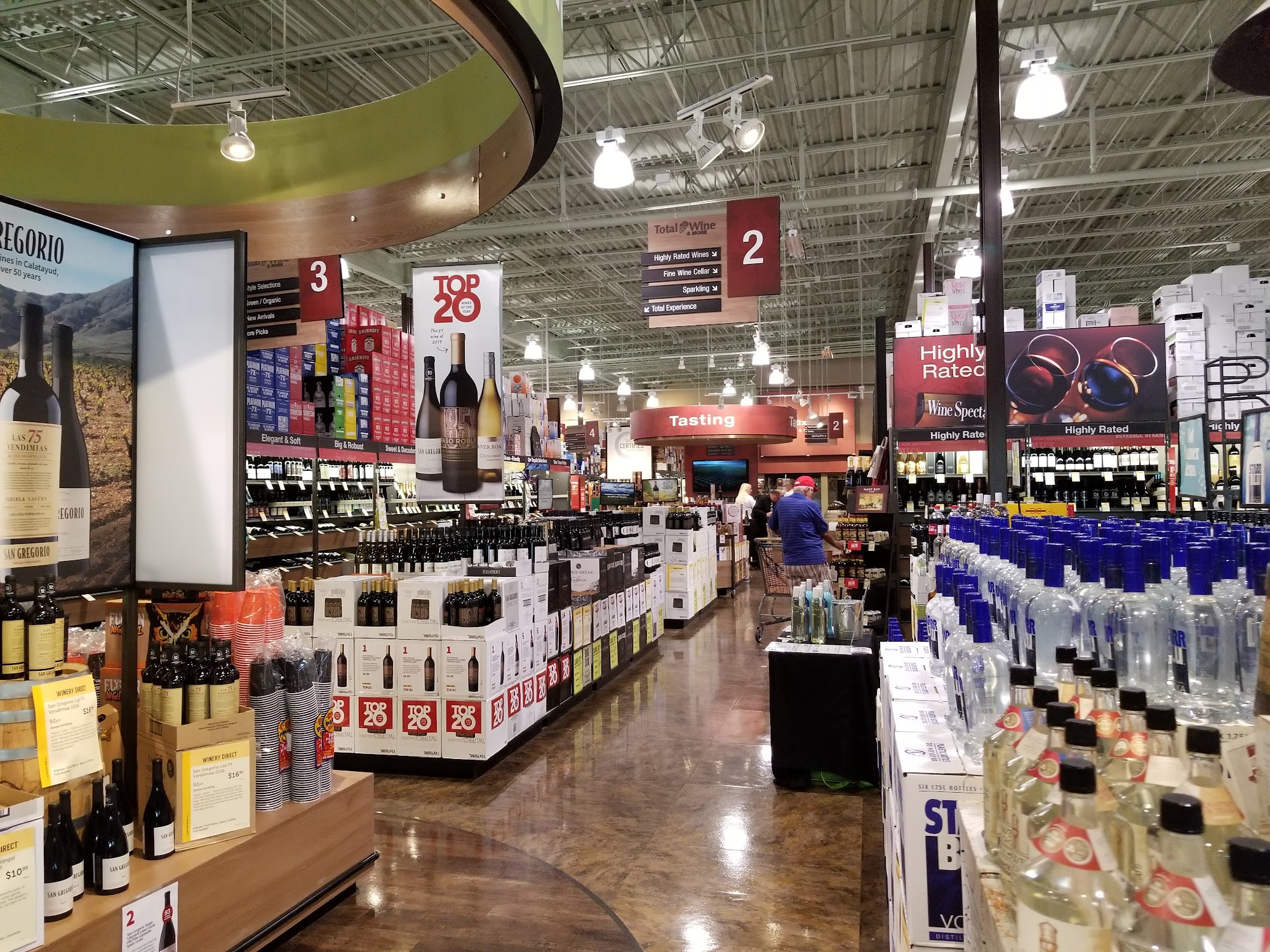 Total Wine & More is a wine, beer, and spirits store with an incredible and superb selection, including cigars. It wins on price, offering great prices and substantial selections. The staff is amazing, knowledgeable, and helpful, providing straightforward recommendations and assistance. Customers can join for educational classes and events, free weekly tastings, and talk with the wine, beer, and spirit experts. The layout and organization of the store are appreciated. The service puts them over the top, with staff engaging with customers and making purchases and returns easy. They now offer Same-Day Delivery and Curbside Pickup. However, a noted gripe is that they do not clearly date all their craft beers, with some having no dates or being very old, which can lead to wasting money on gross old beer if you aren't careful. Despite this, for many it is a favorite place to shop and a good experience more than a chore.