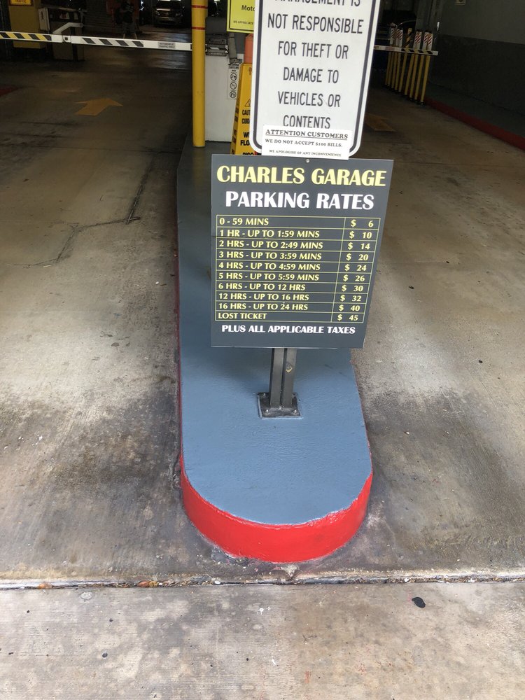 Pricy but reliable professional and ethical My car was protected indoors and I had no worries about tickets or getting towed. I.siggest this Garage, its not that different in price as to what Hotels offer and some hotels claim to offer parking and don't! Come to Charles and be worry free