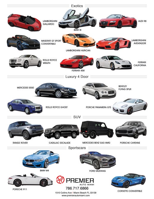 I booked with Premeir Auto Miami For The Weekend was very professionals cars were very luxurious and nice selection I got the corvette and the G wagon Alex helped me would book again