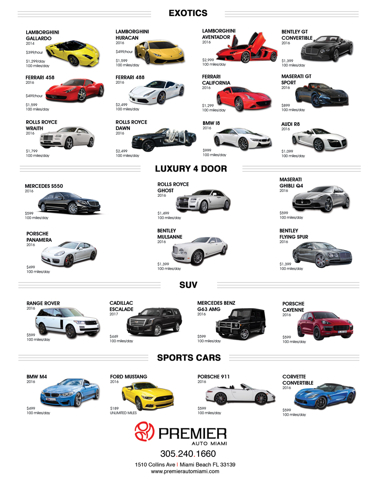 Great experience with Premier Auto Miami! The car was spotless, pickup was quick, and the staff were friendly and professional. Highly recommend for luxury rentals in Miami Beach!