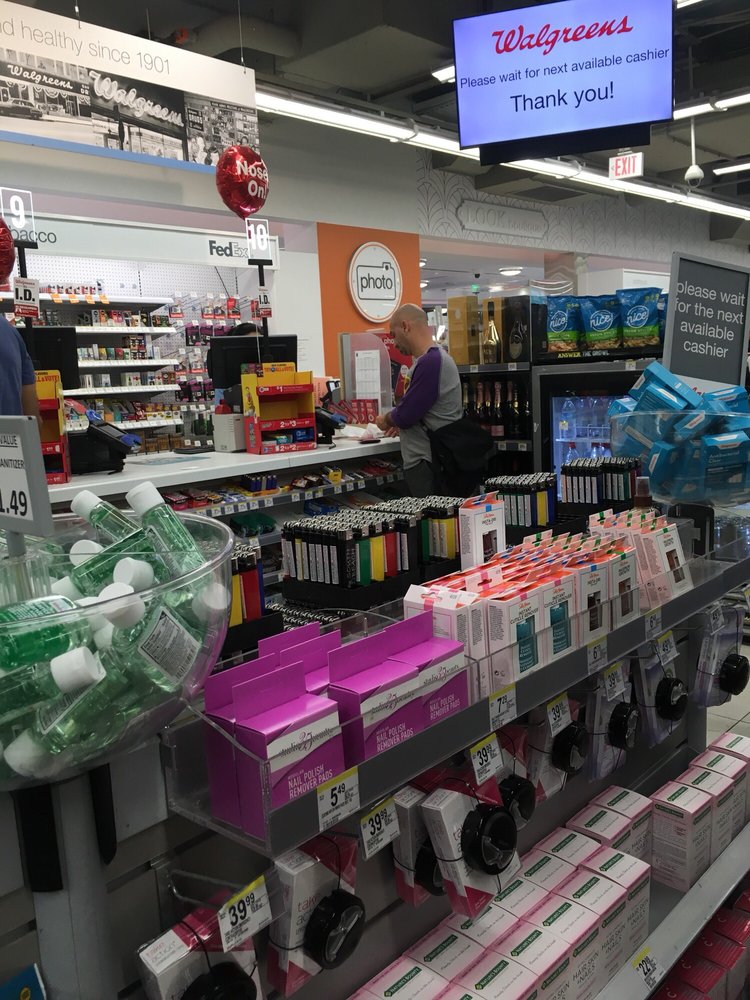 Walgreens Pharmacy is a nice convenience store with a great pharmacy and helpful pharmacists. It has all basic staples like paper towels, sunblock, sandwiches, drinks, water, and wine. Prices are pretty decent. The store can have a lot of traffic and sometimes a long check-out line, but service is generally fast with plenty of employees. It is a great location near hotels. The dedicated Walgreens Liquor store is next door; be aware that ID is required for beer and wine with no exceptions. Staff are overly nice and security is present.