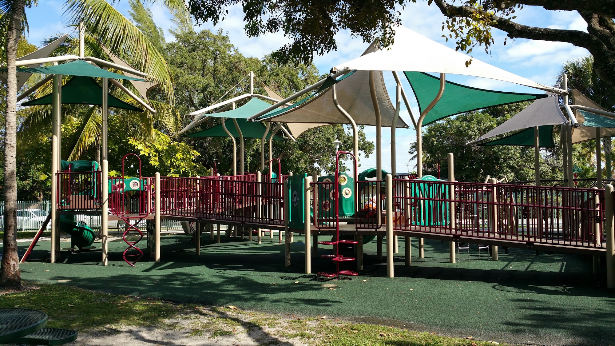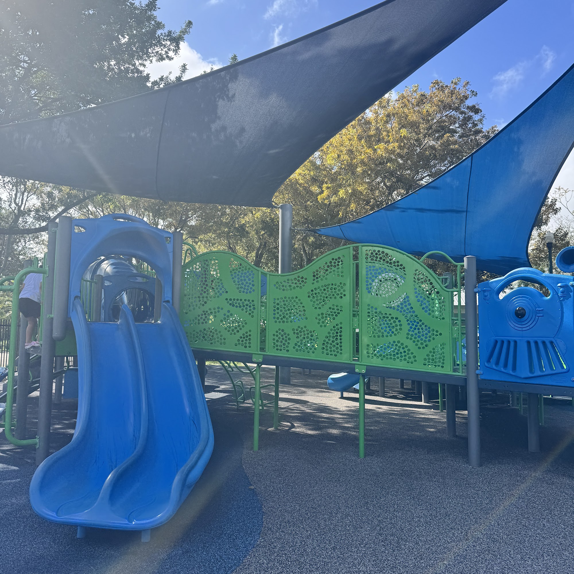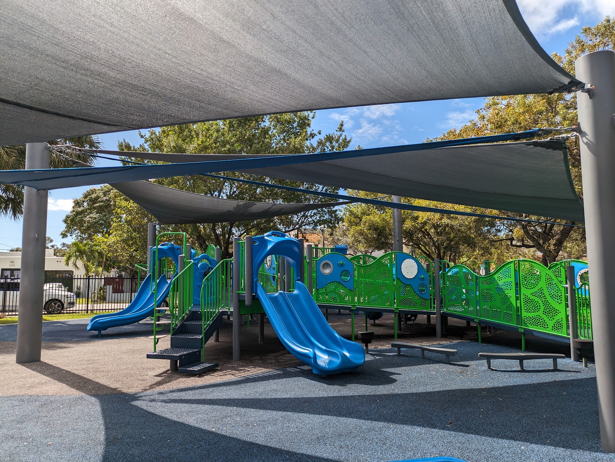 Bryan Park is a great, clean, and quiet place to escape the city's hustle and bustle, located in a quiet residential neighborhood. It offers lots of greenery, walking paths, and a pleasant atmosphere to relax and enjoy nature. The park is very well cared for and provides options for both adults and children. It features a nice children's playground with things to climb and explore, open air exercise equipment, and tennis courts. The park is also known for its four dedicated, nicely surfaced pickleball courts, which are very popular. Visitors will find benches and tables with chairs like picnic benches, ideal for sharing a snack. The park has working bathrooms, clean water fountains, and is pet-friendly. Overall, it is a nice little park for a pleasant day to unwind.