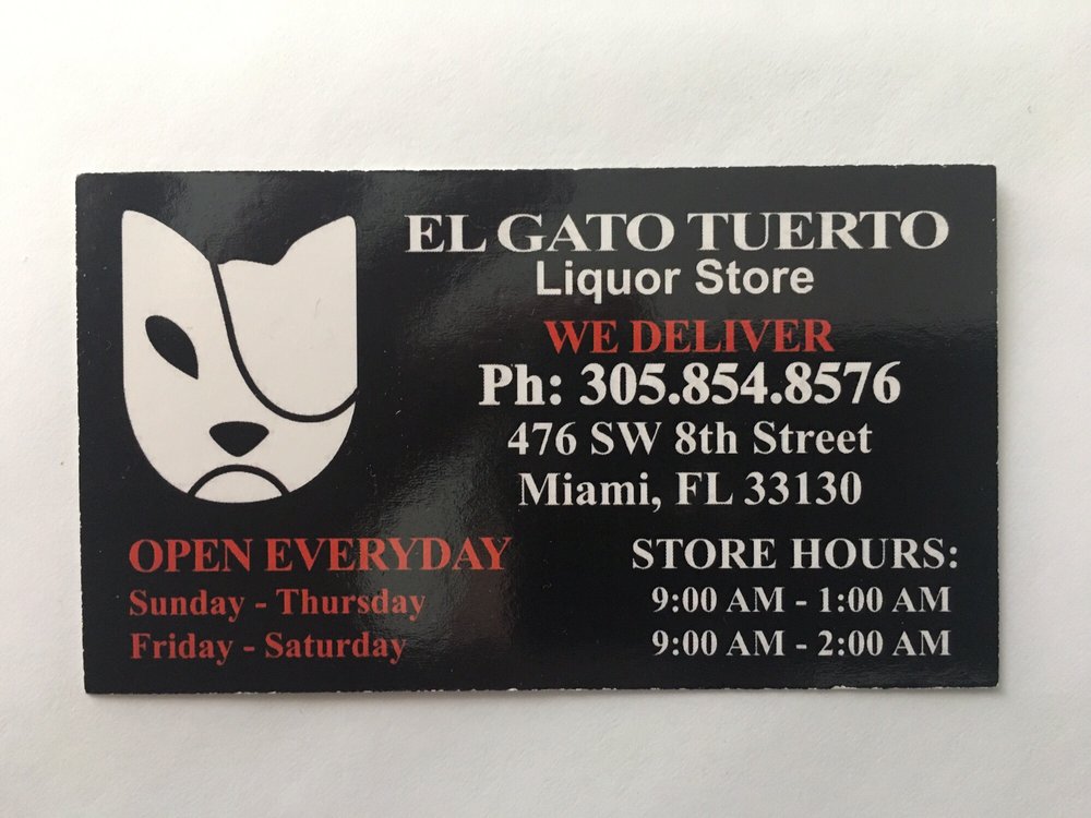 El Gato Tuerto Liquors, located at 476 SW 8th Street in Miami, is a popular liquor store known for its wide selection of high-quality wines, spirits, and beers. Customers appreciate the friendly and helpful staff who provide personalized recommendations and excellent service. The store offers a welcoming and clean environment, making it easy to find the perfect drink for any occasion. With great prices and a diverse variety, including Irish whiskey and craft beers, El Gato Tuerto caters to both enthusiasts and casual buyers. The store's extended hours and options for delivery make it convenient for customers to enjoy their favorite beverages. Many reviews highlight the attentive service, with staff accommodating late visits and even allowing customers to enter with bikes. Overall, El Gato Tuerto Liquors is recognized for its good selection, affordable prices, and friendly atmosphere, making it a trusted destination for quality liquors and a positive shopping experience in the Miami area.