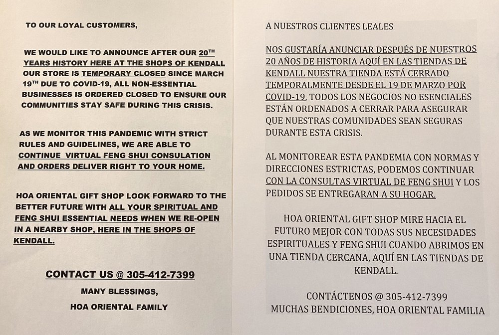 Hoa Oriental Gift Shop is a family-owned business serving South Florida since 1999. It offers a wide selection of high-quality Asian products, including gifts, Feng Shui items, lucky bamboo, incense, Oriental furniture, marble and wood statues, Vietnamese lacquer pictures, and Oriental clothes and shoes. The store has a lovely and spacious atmosphere, though it can feel a bit packed due to the large variety of items, which some may find overwhelming. Customers appreciate the friendly and helpful staff, especially for their extensive knowledge of Feng Shui and Chinese zodiac signs. Visitors often buy protection bracelets, incense, and other decor recommended by the staff. The owner also offers a free blessing service for red lucky money envelopes during early January to bring money luck. Overall, Hoa Oriental Gift Shop is loved for its beautiful items, good energy, and excellent customer service.