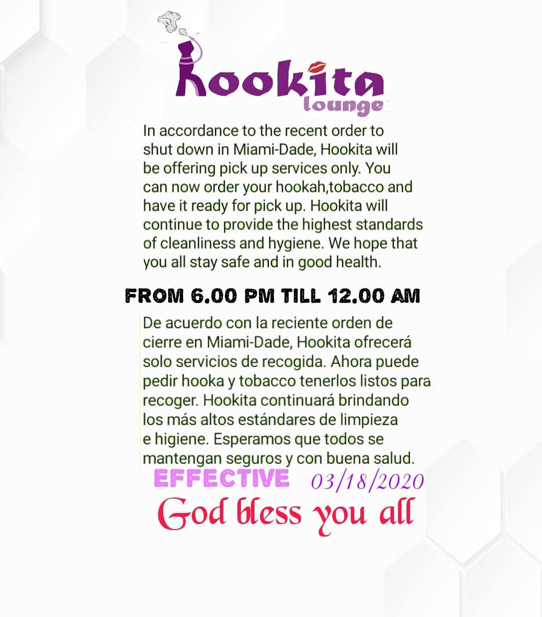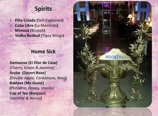 Hookita Lounge is a welcoming space designed for customers to feel like family. Known for its cozy seating and dim lighting, it offers a fantastic ambiance perfect for relaxation. The lounge serves top-notch hookah with a wide variety of unique handcrafted mixes, along with delicious authentic Arabic food and refreshing handcrafted drinks and cocktails. Customers often highlight the exceptional service, especially from staff members like Mila, who is known for her friendly and attentive nature. Visitors appreciate the chill vibe, making it an ideal spot for catching up with friends or meeting new people. Regulars enjoy returning for the great atmosphere, exquisite hookah, and delightful food. Overall, Hookita Lounge is a must-visit for those looking for a home away from home.
