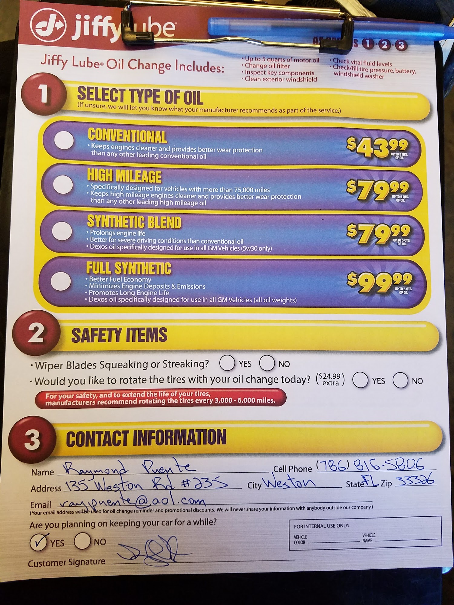 We service our vehicles for scheduled maintenance at Jiffy Lube instead of the dealer because we do not need an appointment, we do not to have to get up at 7:00am to wait on line for service on a Saturday at the dealer, the service personnel is friendly, quick and honest. We will continue servicing our vehicles at Jiffy... read full comment