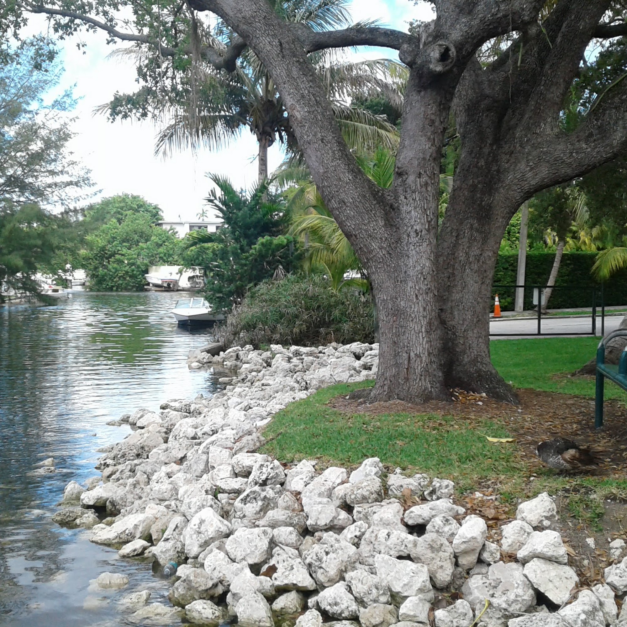 Beautiful park , ducks and birds all over the place lots of cool shade a cool little spot to do a picnic or something . You can even launch stand up paddles or kayaks from here .
