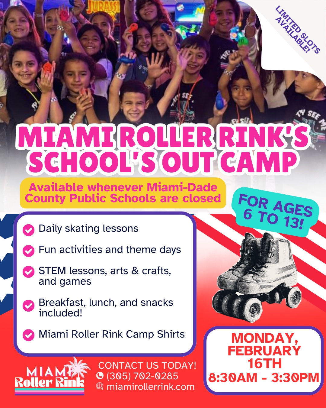 Miami Roller Rink is the home of Hot Wheels & Super Wheels, the longest-standing roller rink in Miami, Florida. Established in 1987, this family-owned rink provides a safe, clean, and fun skating experience for guests of all ages. It is known as Miami's best roller skating rink and skate shop. The floors are smooth and the skate rentals are clean and organized. The ambiance is top tier with amazing music. The staff and security are amazing, very welcoming, friendly, professional, and pleasant. They go above and beyond expectations to make it a great experience. The managers run the place to be fun and safe. The owners put their heart and effort into the building. It is perfect for parties, with great communication and service, and the party hosts are super professional. The food menu is top tier with fresh food like French fries, and they serve beer. The game room is packed with games and fun activities. The bathrooms are immaculate, very inviting, clean, and nicely attended to, providing the best ambiance. It is a great place for a cardio exercise and to make special memories. Many recommend it as the best skating rink in South Florida and a new favorite spot.