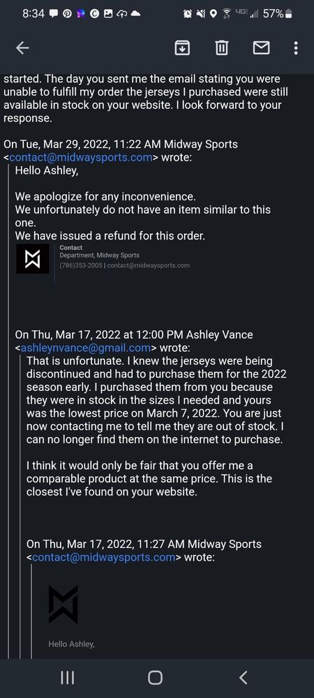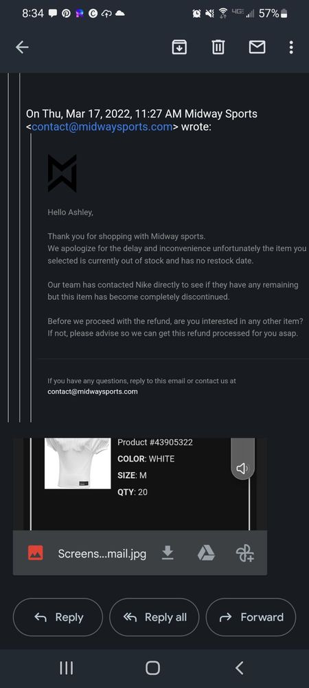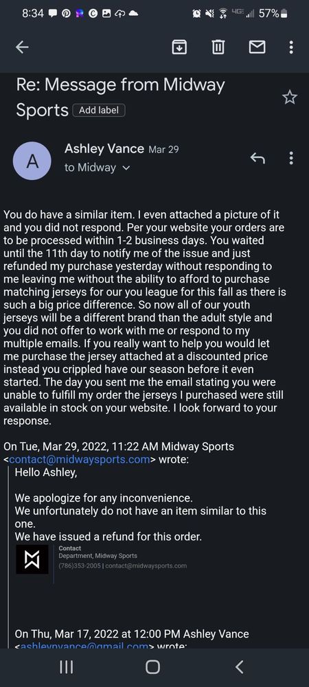 Midway Sports is a retail business that offers a selection of sports apparel, notably popular brands like Nike. Many customers have praised the swift shipping, with some receiving their orders within two days. However, experiences have been mixed regarding customer service and stock availability. Some customers reported frustrations with receiving incomplete orders or items that were out of stock without prior notice. Despite these issues, there are positive remarks about the helpfulness of staff, particularly in resolving delivery problems. Communication regarding order status appears to be improving, as some customers noted prompt updates about backorders and tracking information. Overall, while there are areas for improvement, especially in customer service and stock management, many customers express satisfaction with their purchases and the quality of the items received. Midway Sports continues to attract repeat buyers, with several indicating they will order again despite past challenges.
