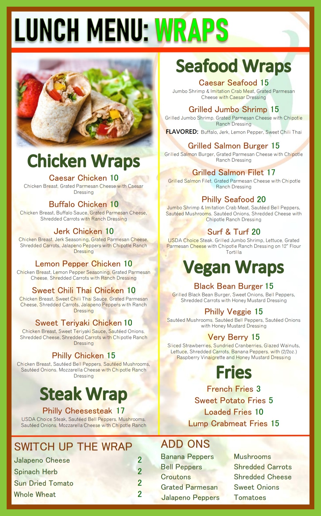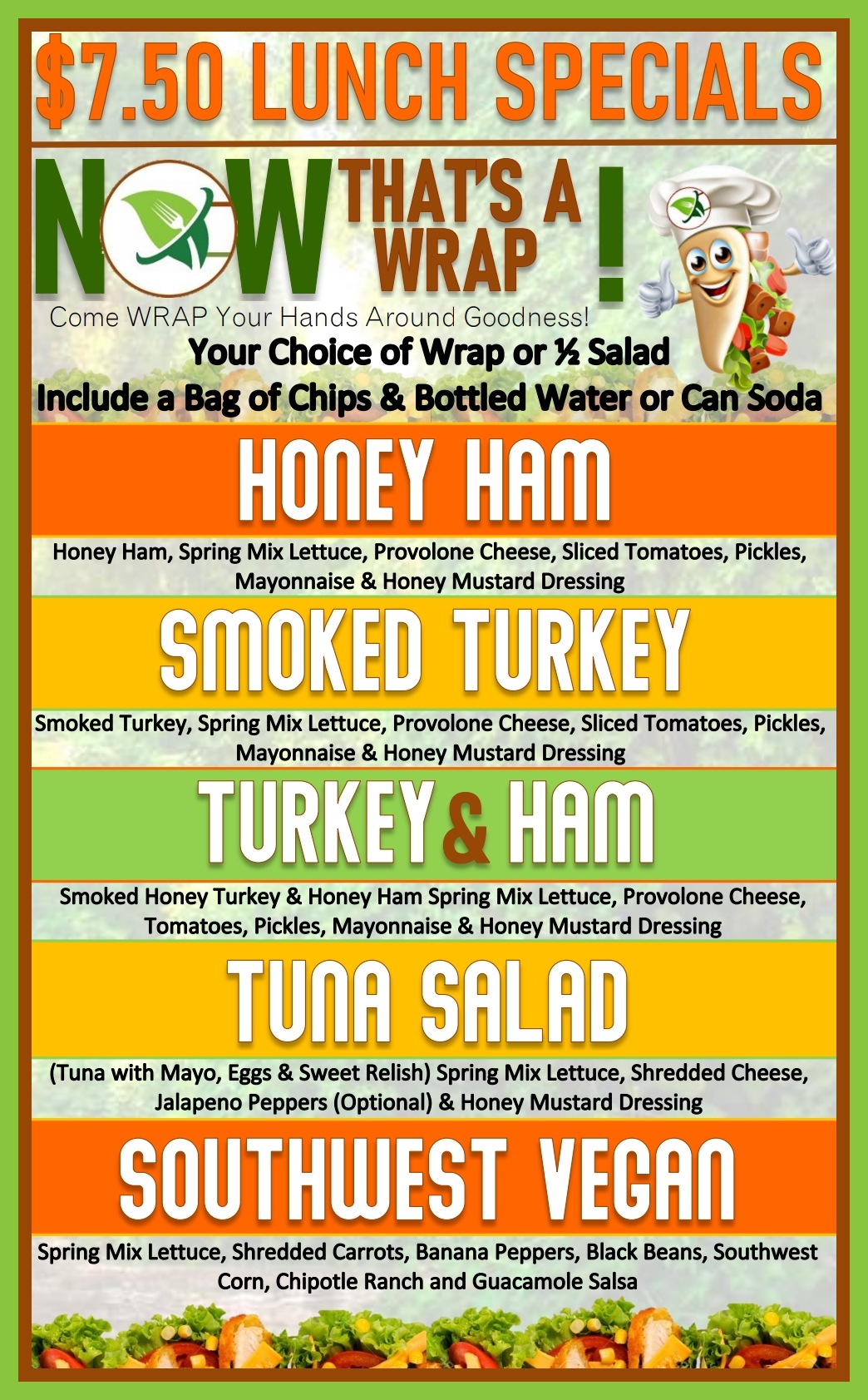 Now That's A Wrap is passionate about providing exquisite one-of-a-kind WRAPS. We specialize in making sure that each wrap has its very own extraordinary taste. Some sweet, savory, sour , crunchy and spicy. We would love the oppurtunity to share our creations and passion for food with you. Wraps should be delicious , nutritious, some healthy and some more indulging then others. The benefits of a healthier option of food can be energizing and provide you with the power of good health. Rest assured when you fall in love with one of our signature WRAPS, you know the next time you come in the EXPERIENCE will be exactly the same as the last. We offer the freshest, nutrient rich and minimally processed ingredients with many health benefits.