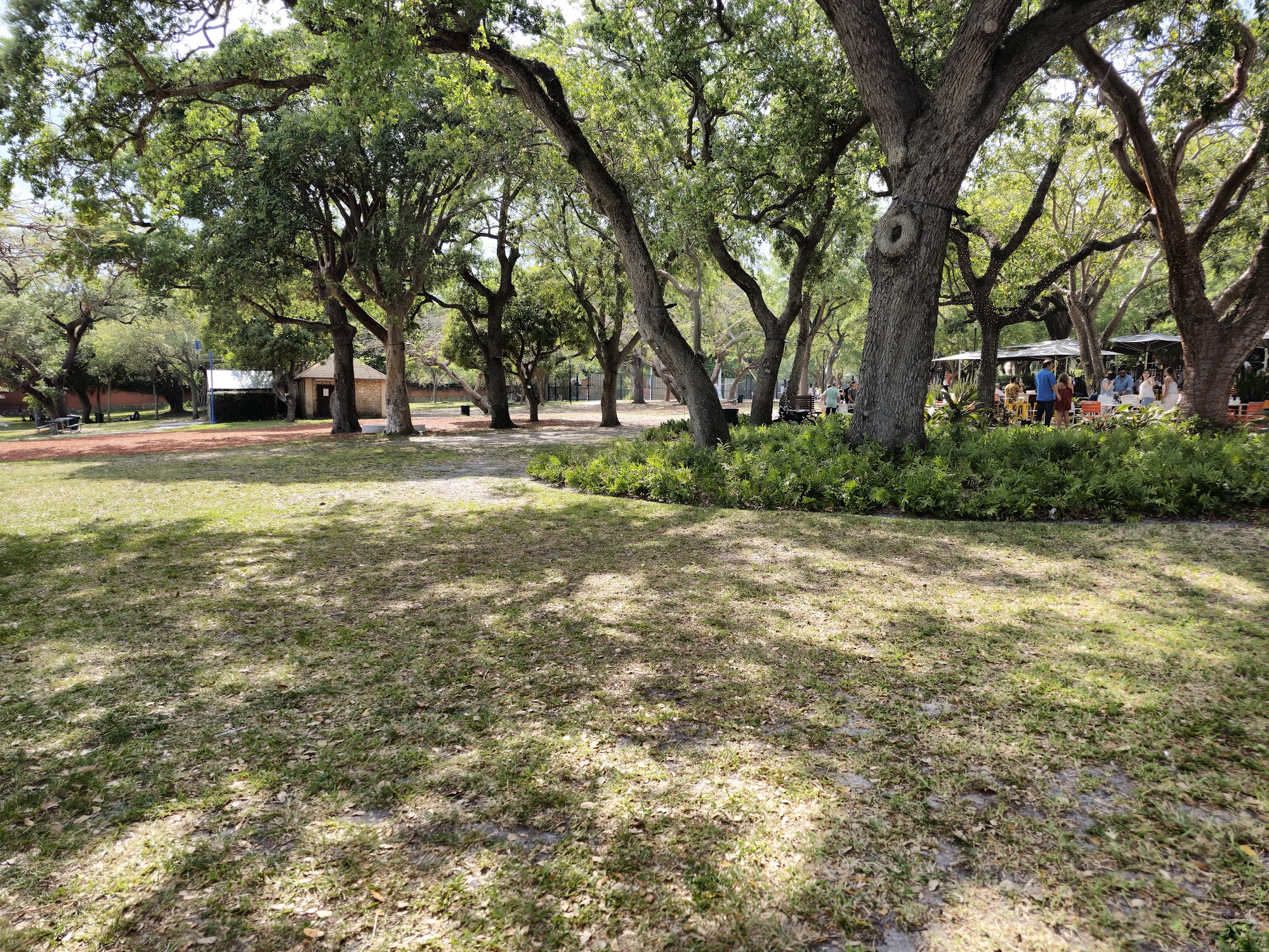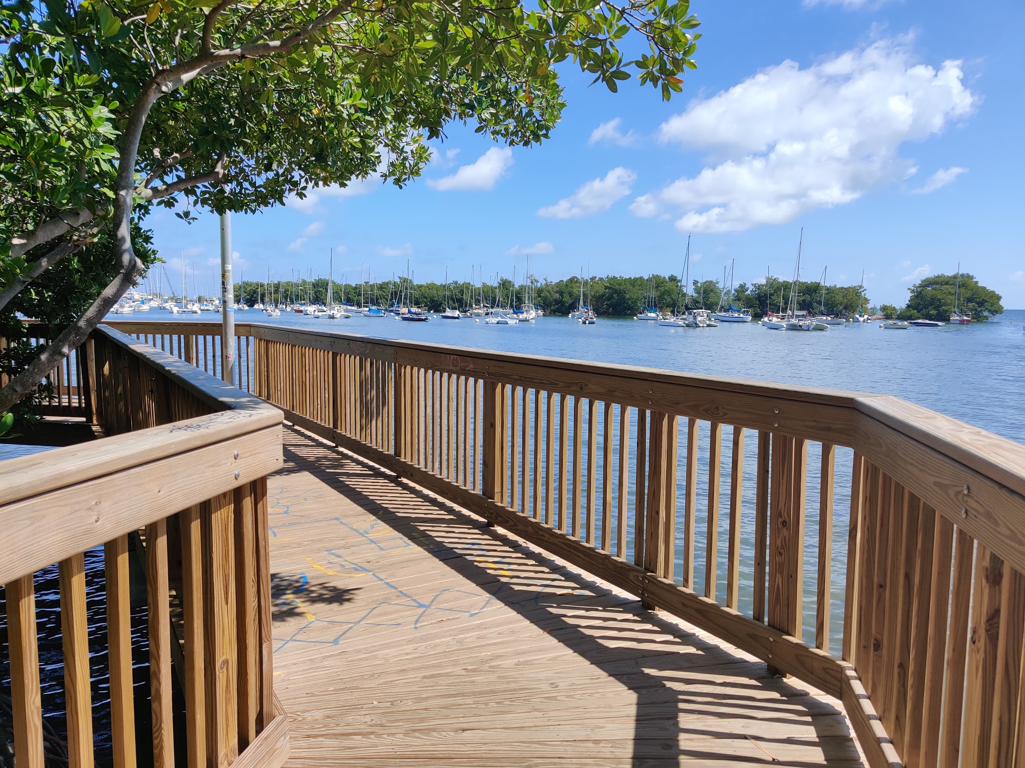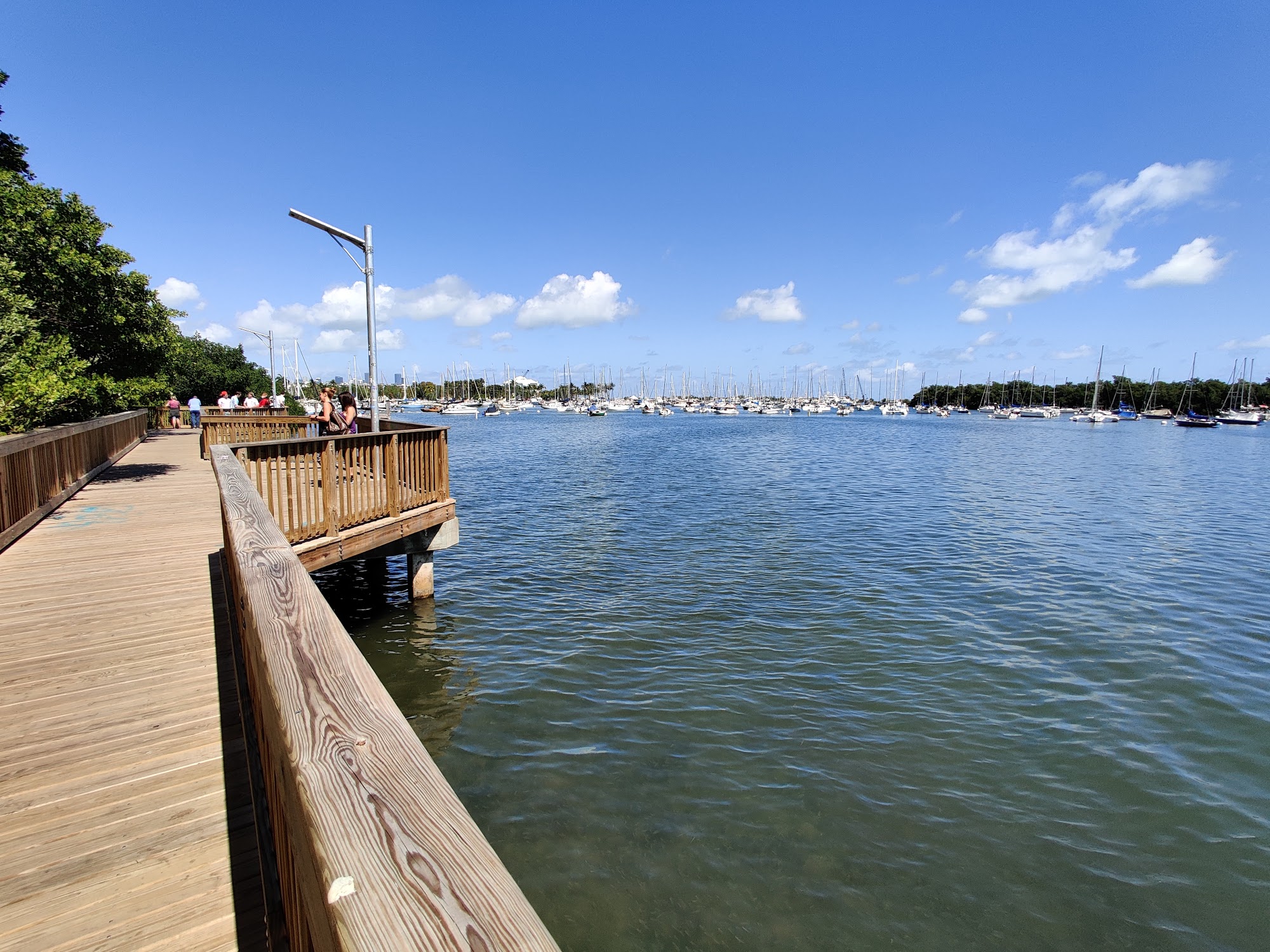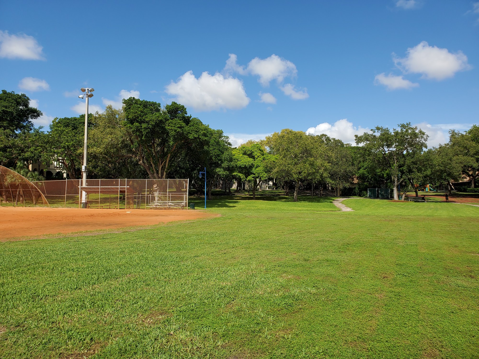 Peacock Park is a well thought out and well equipped city park, perfect for families and a great place for a walk. It features a fun playground with equipment for all ages, including swings and slides, and offers basketball courts, a softball field, soccer fields, and a tennis court. There is a recreation building with ping-pong, foosball, and free Wi-Fi. The park provides beautiful views of the water from a small boardwalk and has a spot to rent paddle boards with a kayak launch site. It is a relaxing, fun place to hang out, with picnic tables, open green space for games, and shaded areas. The ground is soft on the feet. The park is dog friendly, wheelchair accessible with free parking, and has public restrooms. It is open from 7:00 am to 10:00 pm seven days a week and can be extremely lively with cool lights and live music.