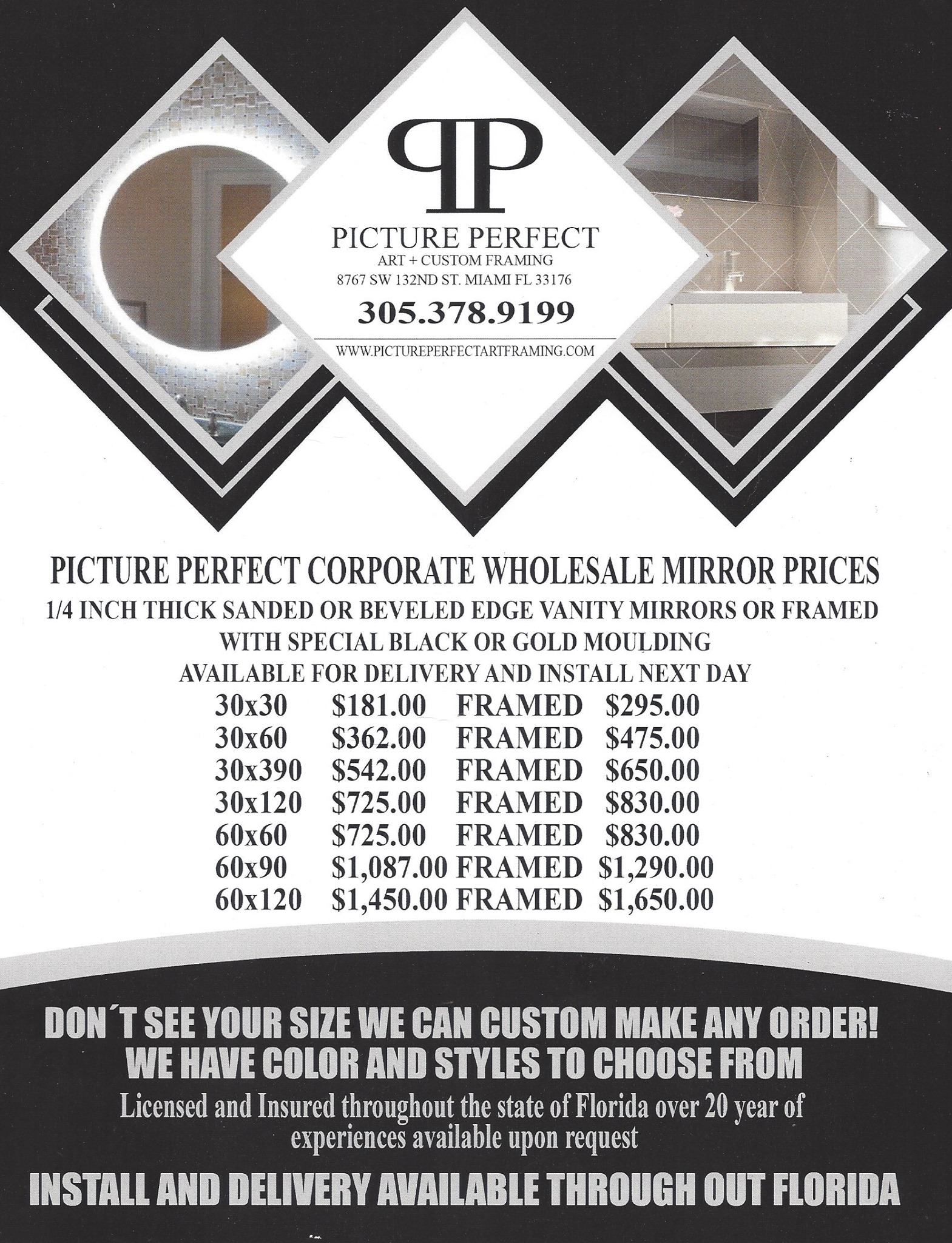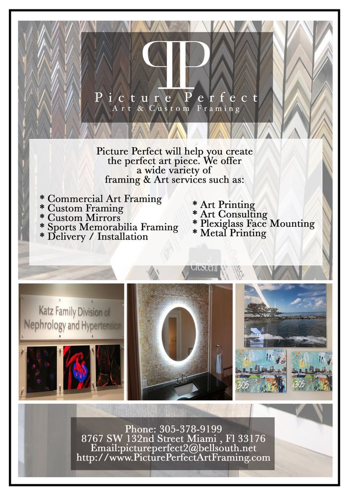 MIAMI’S #1 TRUSTED ART CUSTOM FRAMING COMPANY With over 20 years of experience in the industry, Picture Perfect Art and Custom Framing in Miami, FL has established themselves as the best custom frame service selected by South Florida’s residents & corporate leaders. To help you create the perfect piece of art, we offer a wide variety of framing & Art services such as: Picture Perfect Art, Custom Framing Miami, Florida USA Commercial Art Framing Miami, FL Custom Framing Miami, FL Custom Mirrors Miami, FL Sports Memorabilia Framing Miami, FL Art Printing Miami, FL Art Consulting Miami, FL Plexiglass Face Mounting Miami, FL Metal Printing Miami, FL