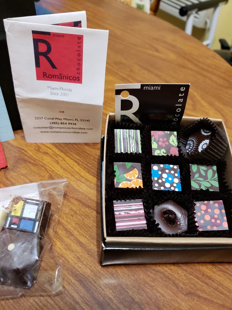 Romanicos Chocolate is a renowned gourmet dark chocolate store located in Miami, Florida, with over 20 years of experience in delighting customers and helping businesses with their corporate gifts. The store offers a wide range of high-quality, fresh, and delicious chocolate products, including truffles, bonbons, bars, and healthy snacks, catering to various dietary preferences such as vegan and gluten-free. Customers praise the store for its exceptional service, delicious chocolates, and the owner's passion for the craft. The chocolate-making classes hosted by the store are highly recommended, with attendees learning the history of chocolate, the art of tempering, and the opportunity to create their own chocolate creations. Romanicos Chocolate is a go-to destination for holiday gifts and corporate gifts, known for its Miami-inspired flavors and tropical influences. Customers appreciate the store's attention to detail, the quality of the chocolates, and the owner's dedication to providing an exceptional chocolate experience. Whether you're looking for a unique gift, a special treat, or an opportunity to learn the art of chocolate-making, Romanicos Chocolate is a must-visit destination for chocolate lovers in Miami and beyond.