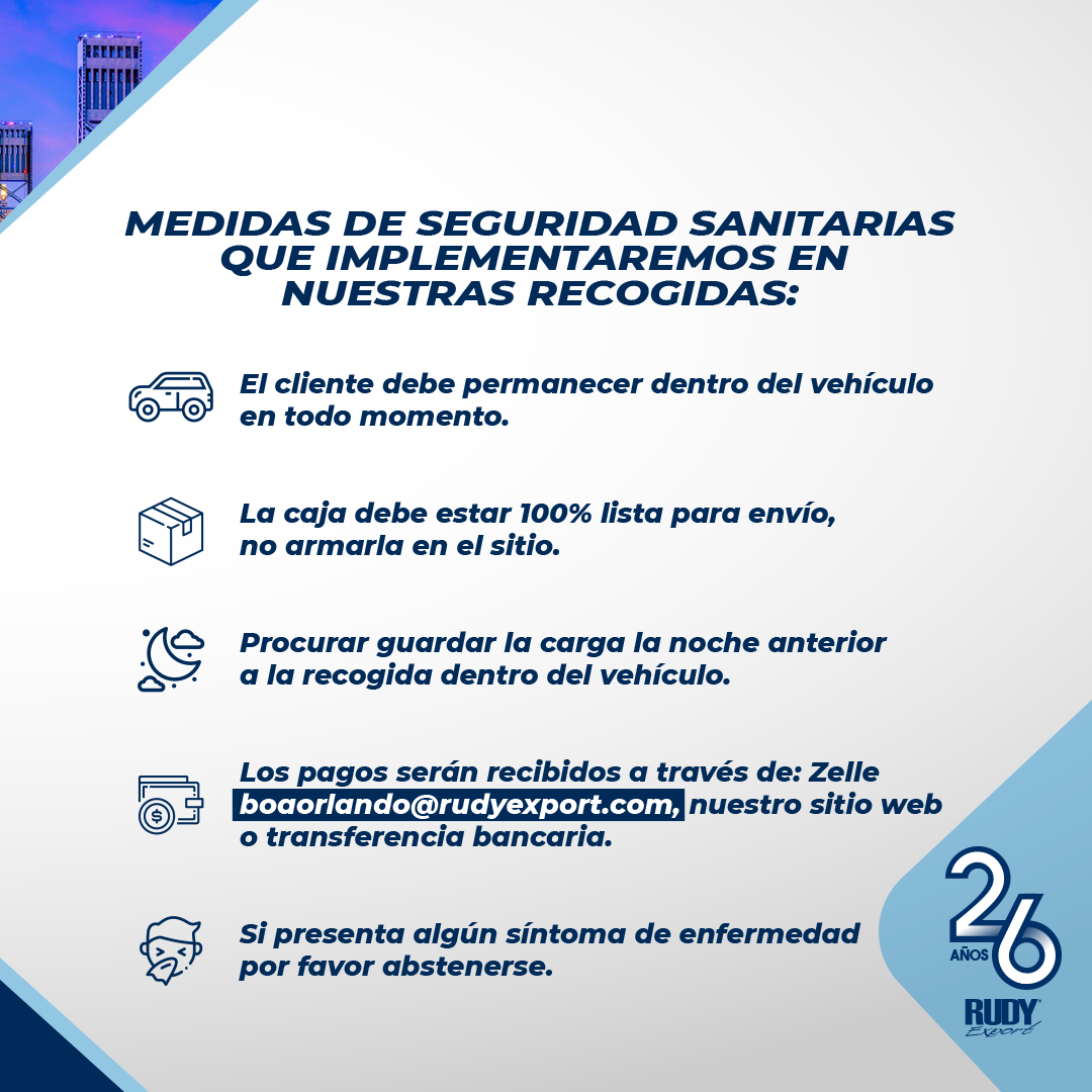 Rudy Export Corporation is a company with many years of experience, known for being super responsible and organized. Shipments arrive at the destination without any problem, intact and on time, often even on Sundays. Air shipments arrive in less than a week and sea shipments in two weeks. The attention is very good and quick, with the option for repackaging to minimize costs. In case of any inconvenience, they always announce it by email. Many clients have used their services for years and never had any problems, recommending them as the best shipping service.