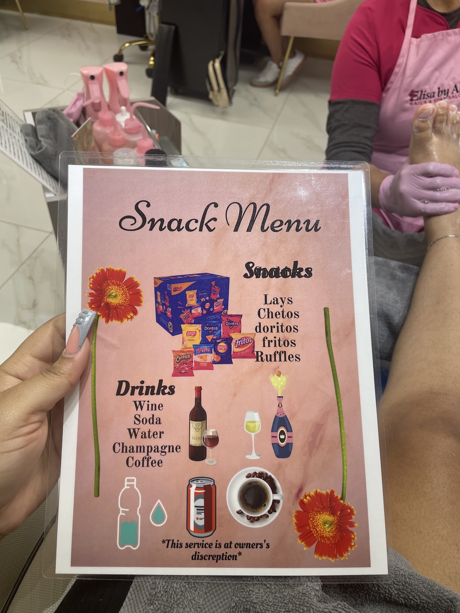 ana did my pedicure (phenomenal work) . rosita is my nail technician . she always does a beautiful job . the hospitality and welcoming feeling i get every time i come .