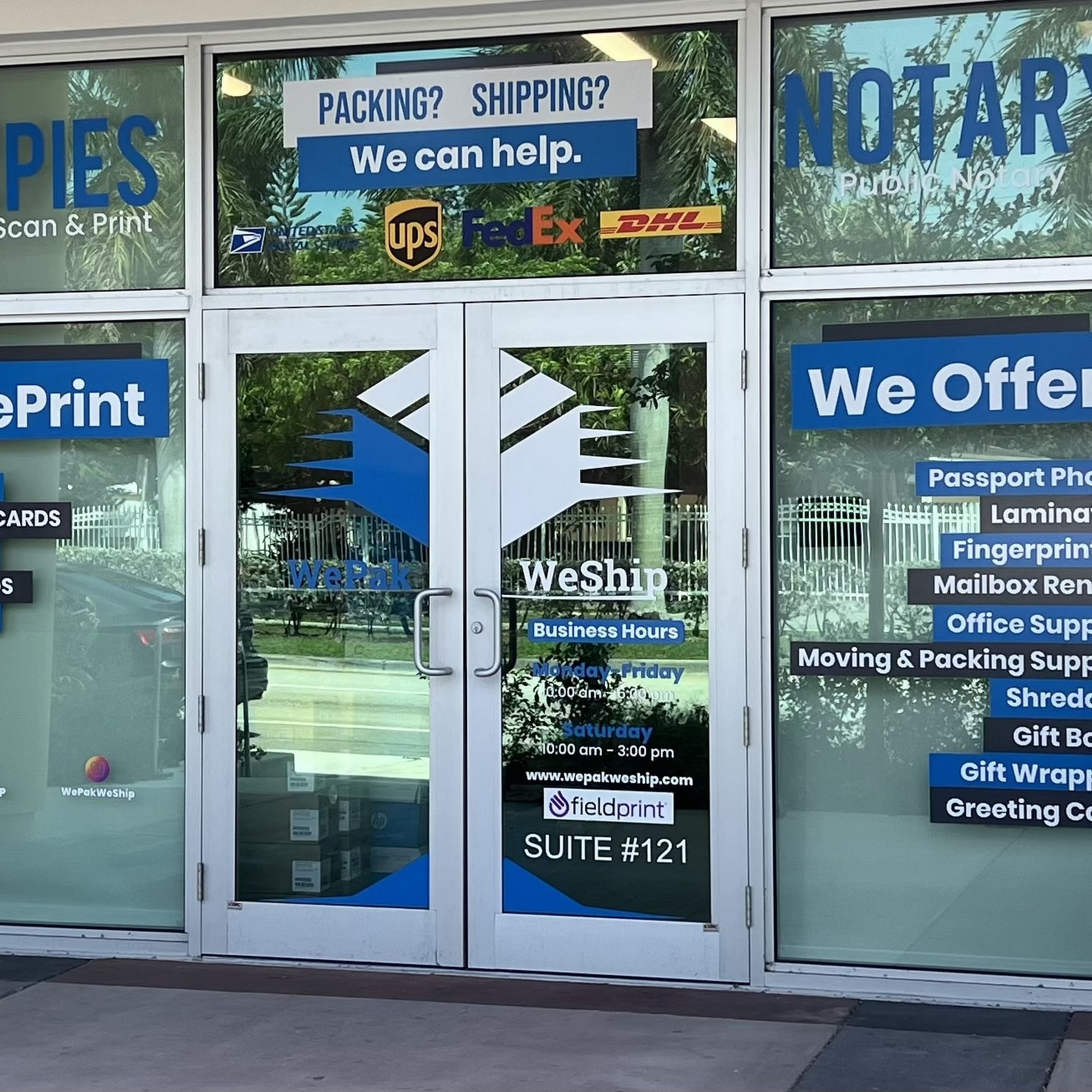 WePak WeShip is a friendly and professional local business offering a variety of services, including shipping, shredding, printing, fax, passport photos, personal and business mailboxes, and notary services. They also provide office supplies, gift wrapping, lamination, and fingerprinting. The team is known for their helpful and courteous customer service, with staff members like Corey and Ava receiving high praise for their kindness and assistance. The business specializes in shipping large and heavy freight, as well as domestic and international air cargo, making it a reliable choice for shipping items purchased from auction sites such as GovDeals, AllSurplus, Machinio, and PublicSurplus. They also offer convenient pickup services for auction items from locations like FIU University Surplus and the University of Miami Surplus. Customers appreciate the quick, efficient service and the welcoming atmosphere, leading to many satisfied repeat clients.