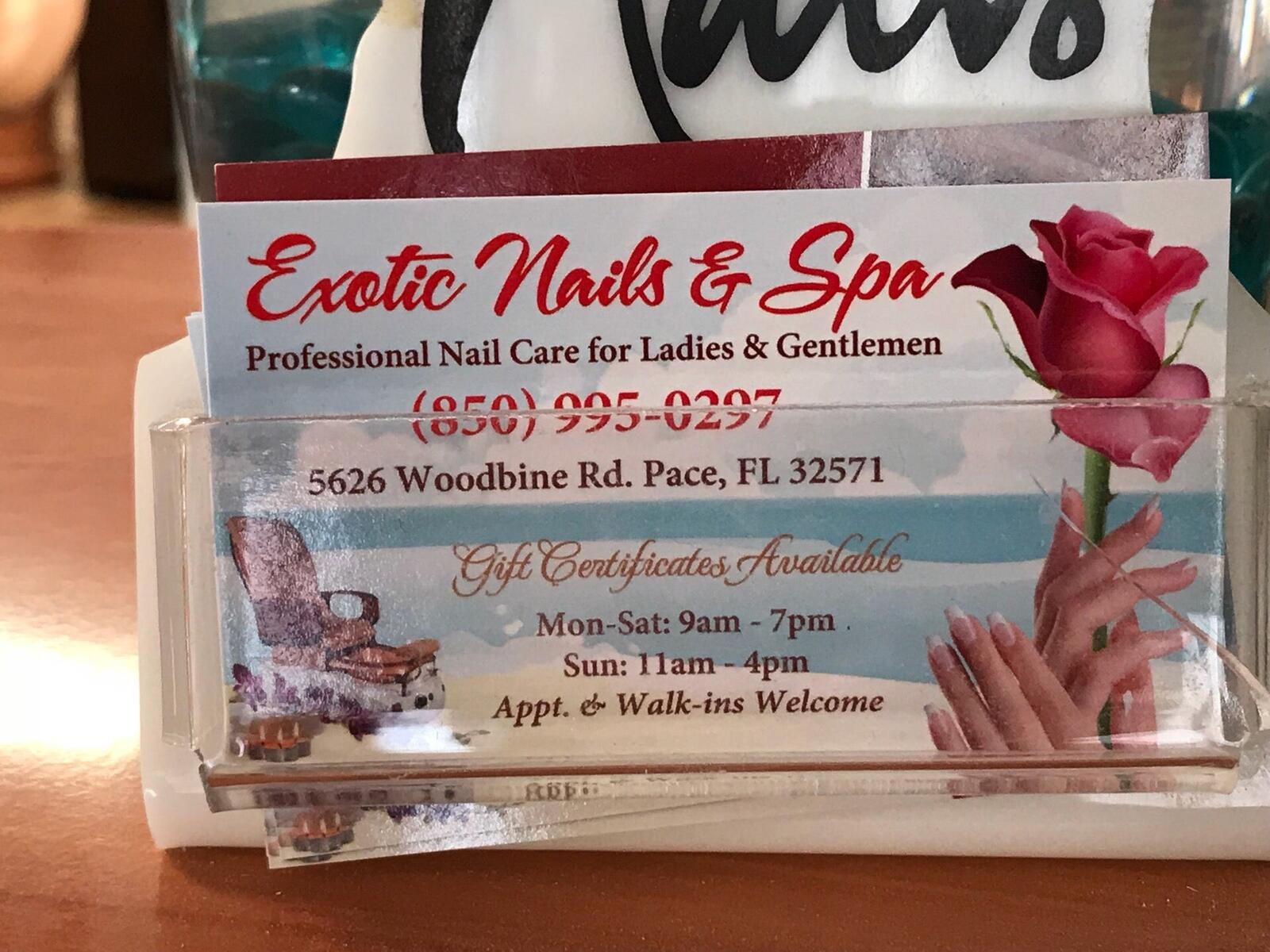 Exotic Nail & Spa is a highly praised nail salon located in Milton, Florida. Customers appreciate the skilled and talented nail technicians who deliver excellent services like dip powder nails, manicures, and pedicures. Many reviews highlight the technicians' ability to create nails exactly how you want from a photo and suggest the best colors. The staff are always pleasant, professional, and so nice and welcoming. The salon is noted for its very clean, inviting atmosphere and unparalleled service. Overall, it is a favorite destination for both adults and children seeking quality nail care and the perfect nails.