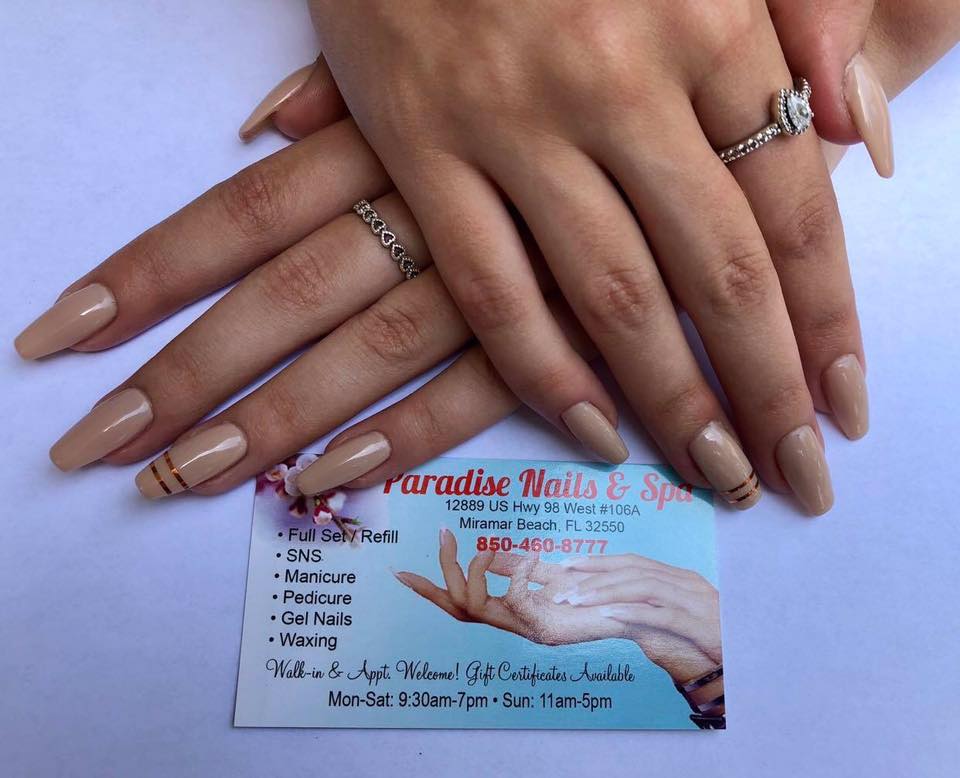 Paradise Nail & Spa, located in Miramar Beach, FL, is a full-service nail salon that has been under new management since March 2018. They offer a variety of services including gel manicures, pedicures, waxing, and skin care. High-quality OPI GEL and polish colors are used, and they provide a 2-week guarantee on gel work with normal wear. The salon prioritizes cleanliness and customer service, providing a comfortable environment for all clients. The staff members, including Cam and Lan, have received praise for their attention to detail, friendliness, and quick service. They are accommodating of requested styles, as shown by their ability to replicate Pinterest inspirations and even recommend alternative services such as dip nails. Pricing is reasonable, and the salon explains everything to customers, ensuring they have a good experience without feeling pressured. The location is clean and highly recommended by those who have visited. Overall, Paradise Nail & Spa provides a positive experience for clients seeking nail and spa services.