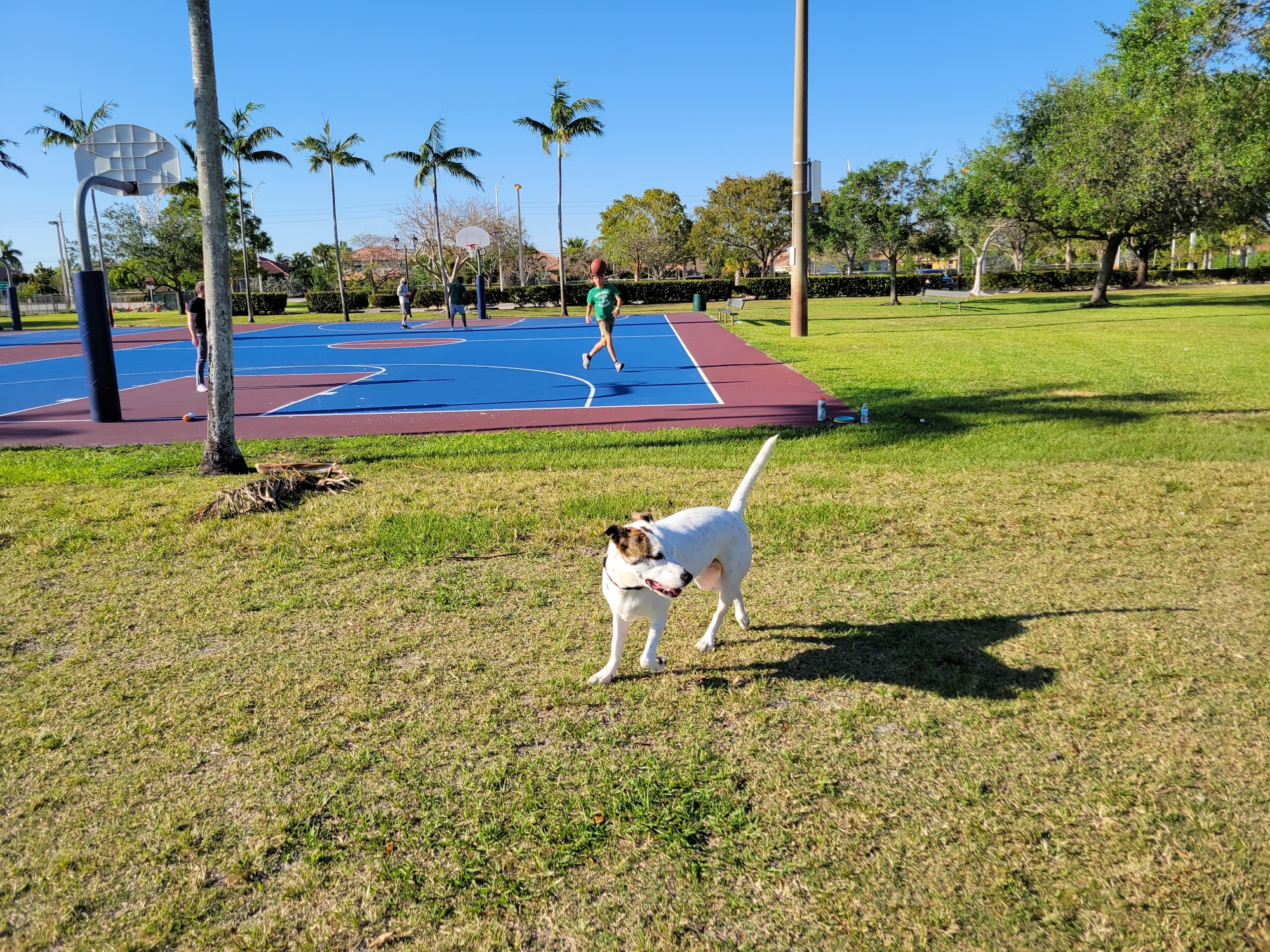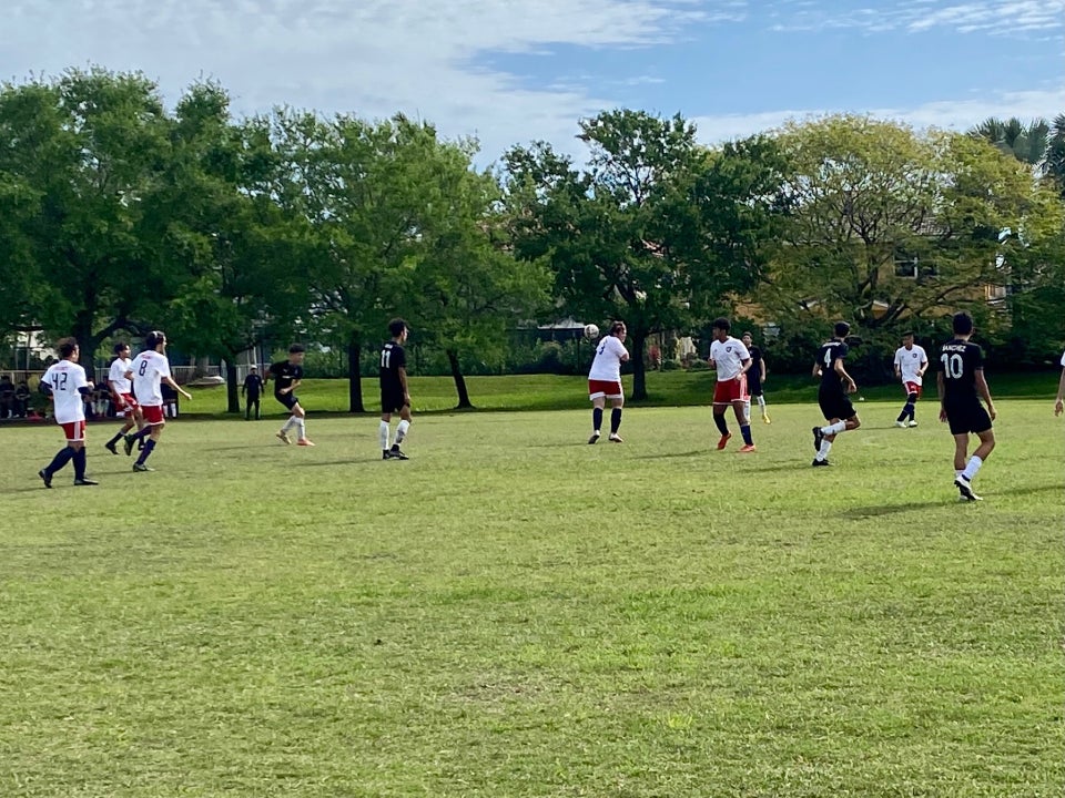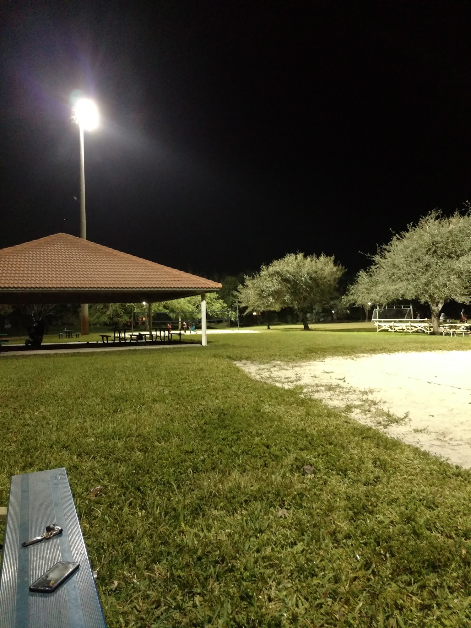 Silver Shores Park is a nice, small, and lovely park close to communities. It is very spacious with many open fields for soccer, basketball courts, sand volleyball, and a good playground in good condition. It is perfect for outdoor gatherings, picnics, and sports, with a pretty good sized shelter and a covered patio. The park is always clean, with clean restrooms and well-lit, clean tennis courts. It is a great spot for a quick walk, to shoot some hoops, or to have a picnic. The area is dog-friendly and pleasant, with wild parakeets and beautiful geese, though the lawn needs to be kept up. It is a very pleasant place to be.