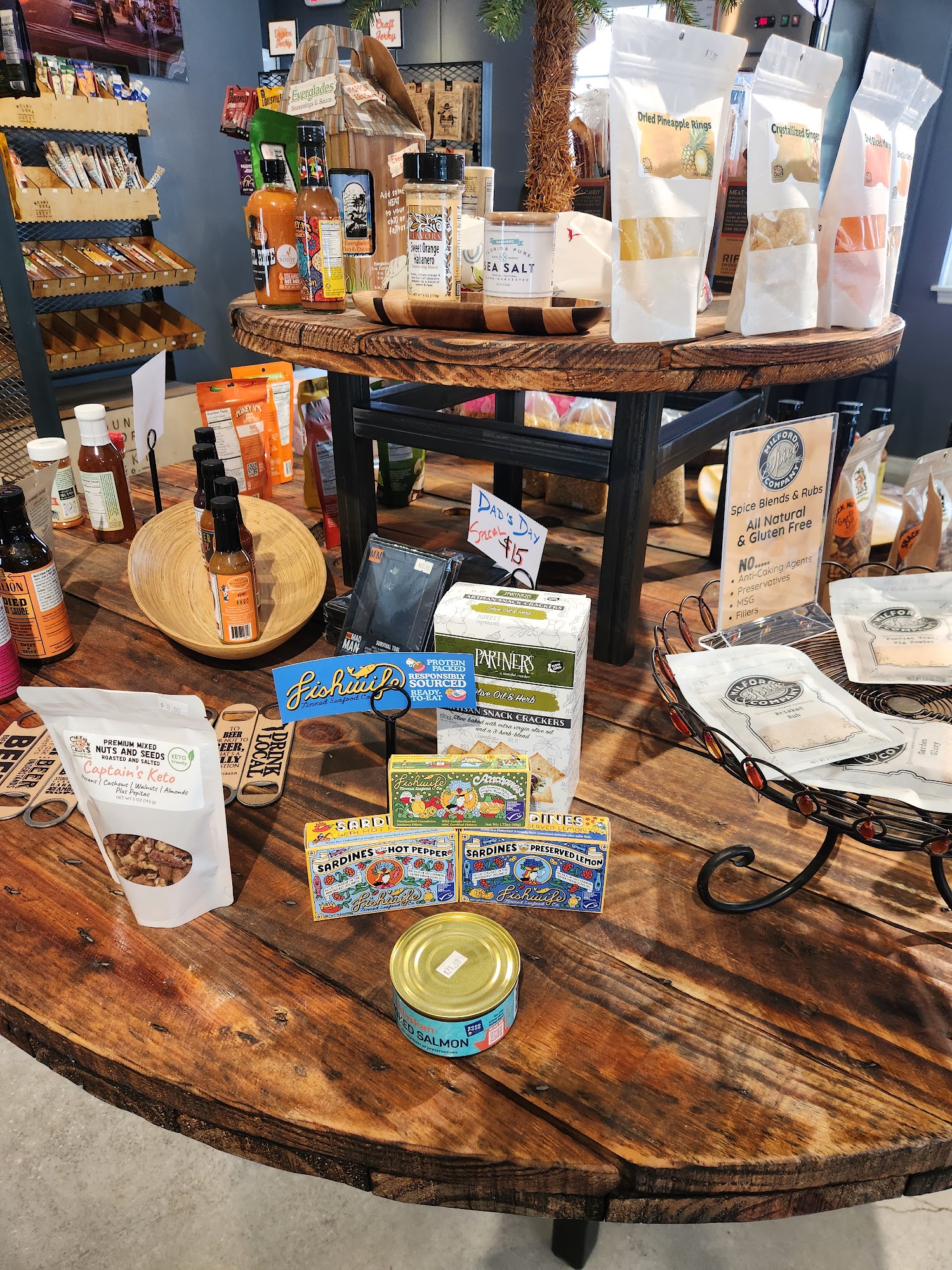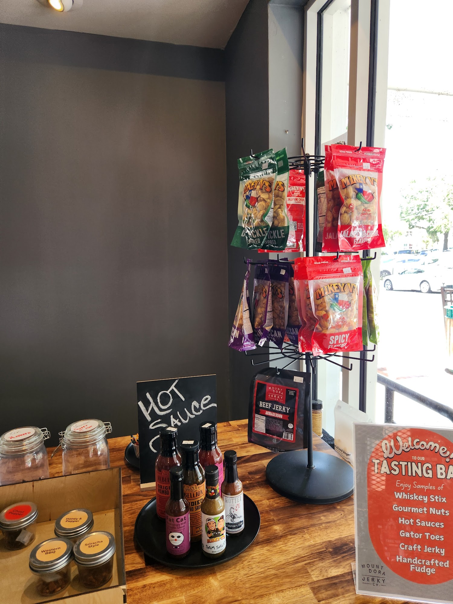Mount Dora Jerky Co. is a popular local store known for its wide variety of delicious jerky flavors. Visitors enjoy the opportunity to try samples at the tasting bar before making a purchase, which adds to the fun experience. The store offers unique options like smoky sweet, fiery apocalypse, and even real biltong, appealing to different tastes. Customers praise the friendly and informative staff, especially highlighting a staff member named Cody for making their visits enjoyable. Many say the jerky is flavorful, not overly chewy or tough, and some even use it to season steaks, which they describe as the best they've ever had. The store's adorable appearance and pleasant atmosphere make it a favorite stop for families and jerky lovers alike. With so many tasty selections like Maple Bacon, Peppered Orange Teriyaki, and Korean BBQ, many customers plan to visit again and consider themselves regulars.