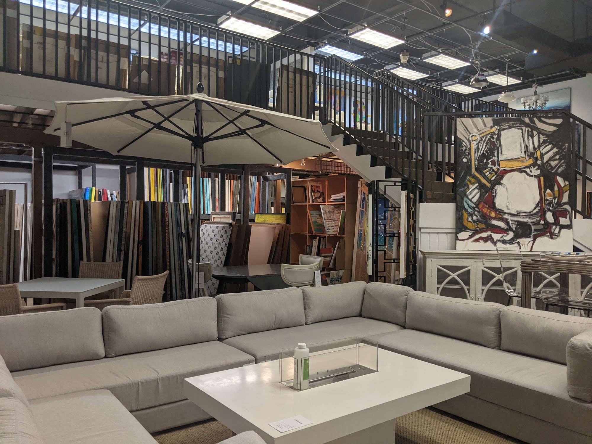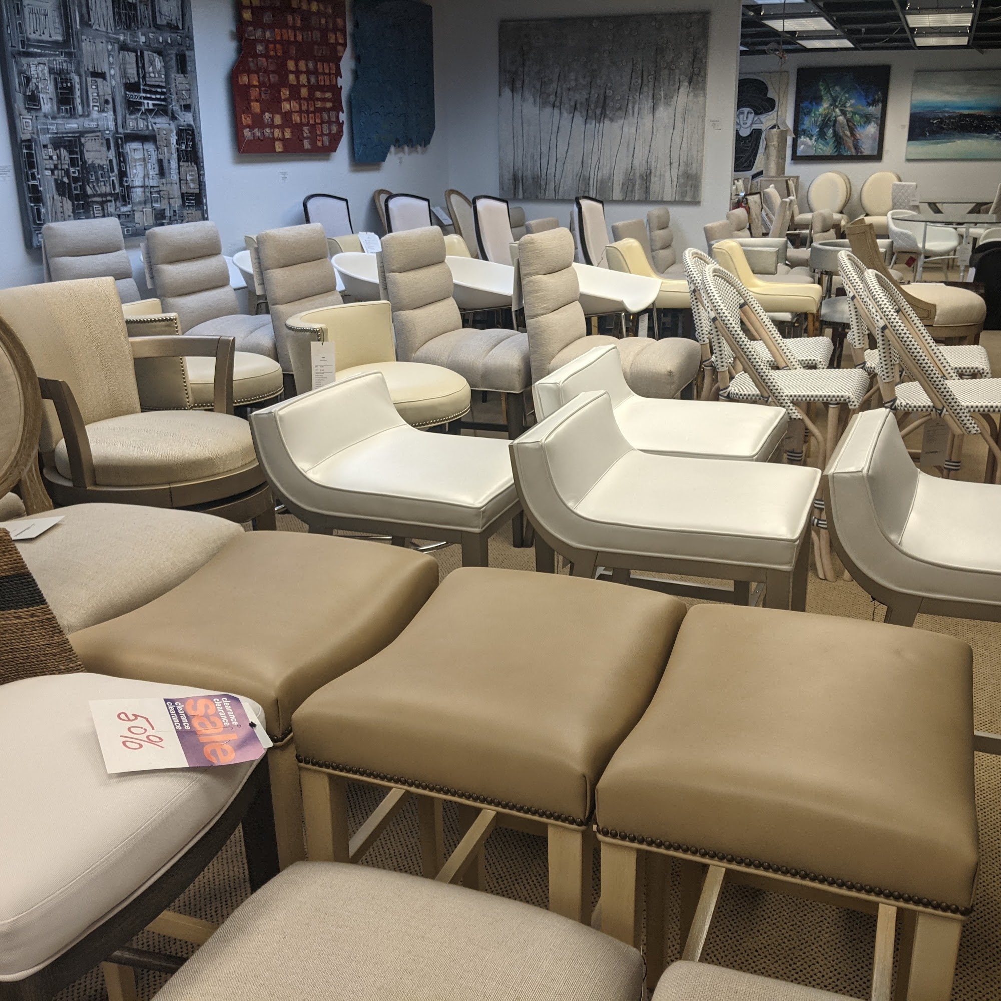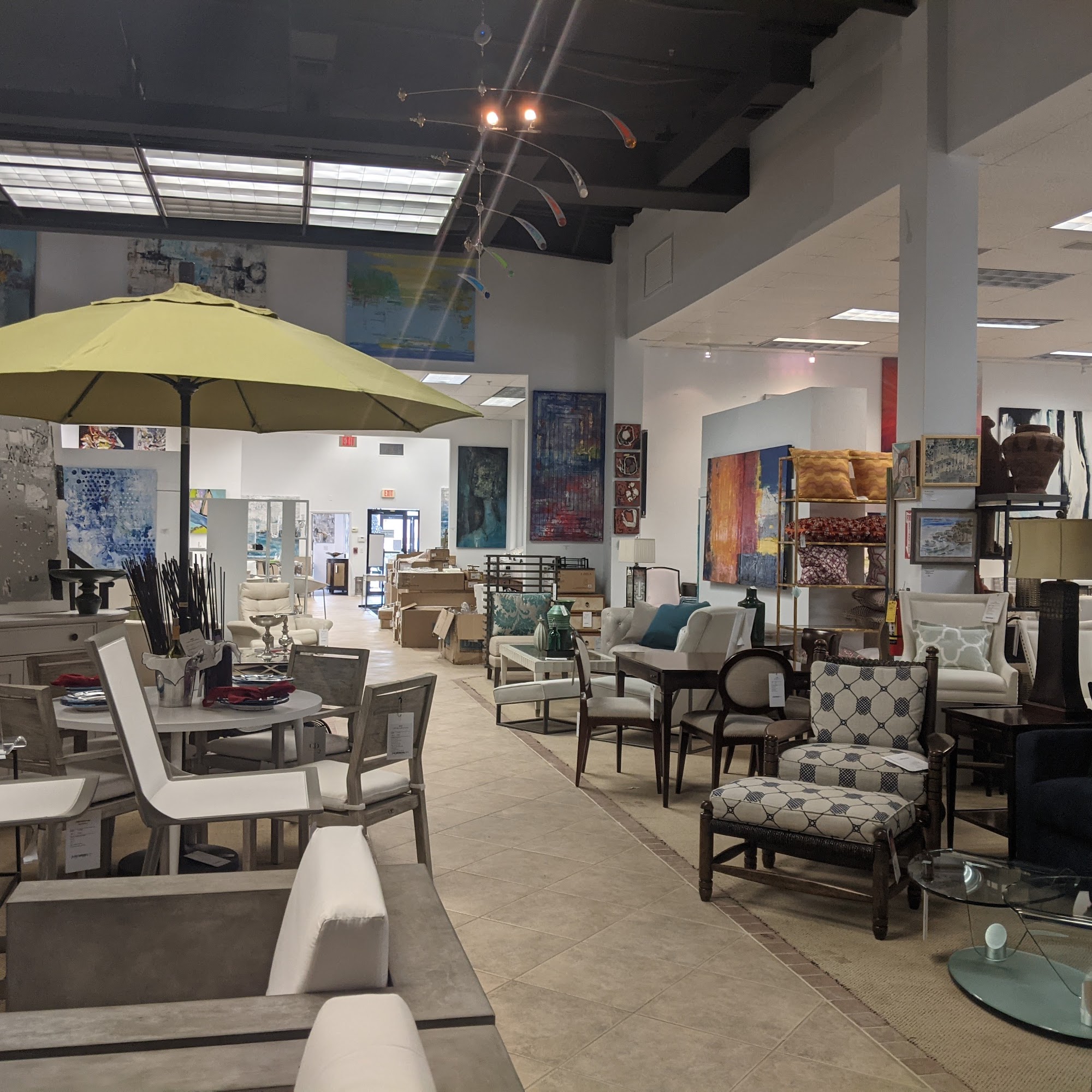 This place is the outlet store for Clive Daniel Design in Naples and has a wide selection of items from the main store that run the gamut, bedroom sets, dining room tables and chairs, sofas and sectionals.Additionally there is an Art Gallery in the same space and all the art works on the wall are for sale.