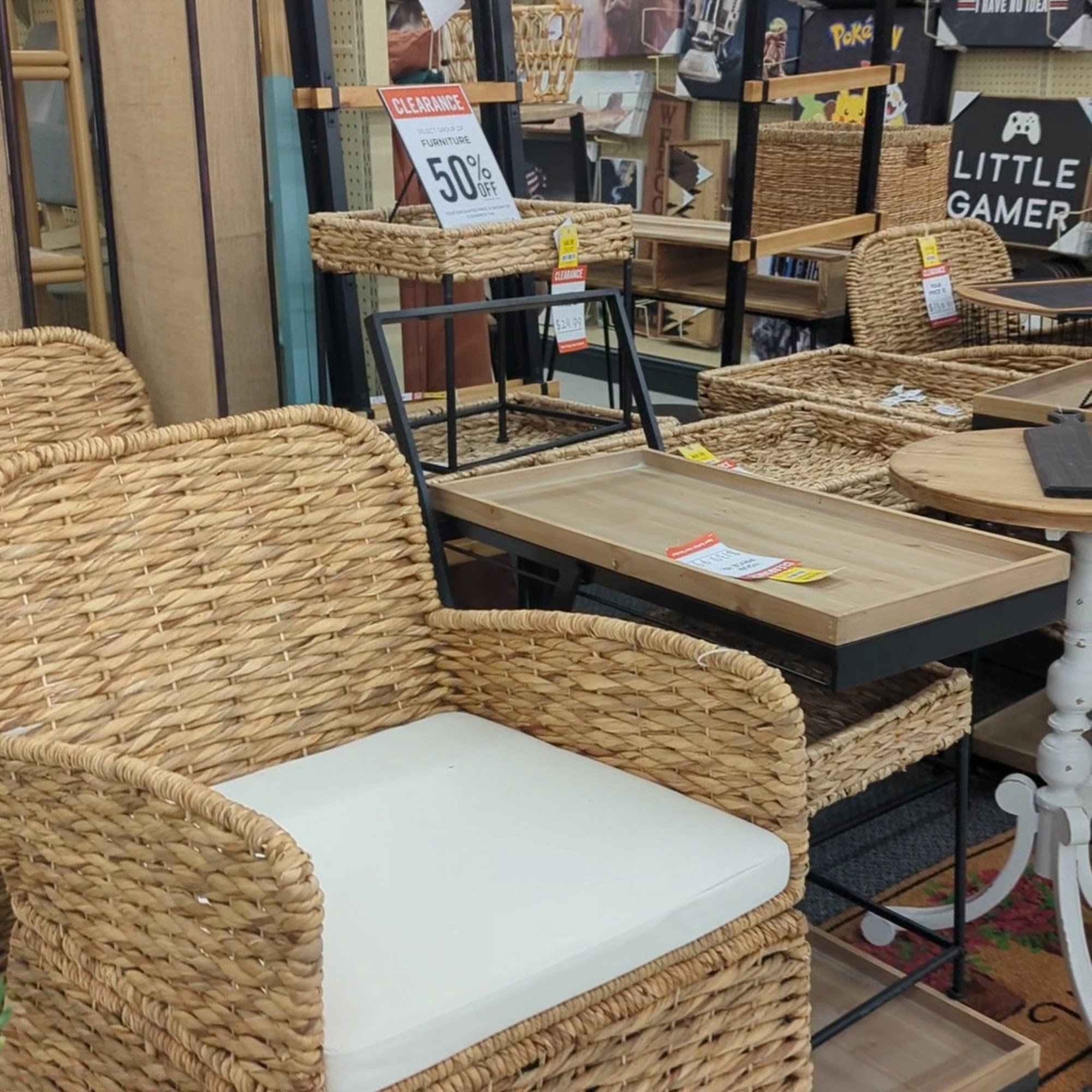 Love their flower department. Great large pictures and wall hangings. No coupons but wait for sale.