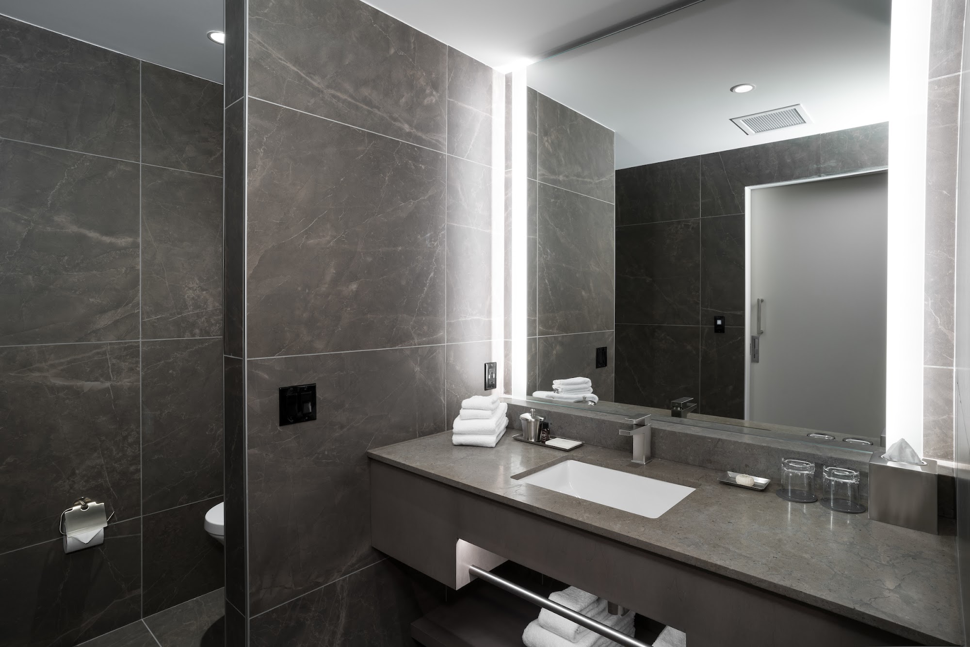 The Innovation Hotel is a unique and modern hotel, originally catering to medical professionals but now open to the public. It is consistently described as an extremely good, remarkable, and amazing place with outstanding customer service from friendly, helpful, and professional staff. The hotel is noted for being the cleanest and most immaculately clean hotel, with perfectly clean grounds and rooms. The rooms are modern, upscale, high-tech, and state-of-the-art, featuring technology that controls everything from blinds to lights. They are spacious, with gorgeous views, amazing bathrooms, and a great modern vibe. Some rooms share a private meeting lounge. The breathtaking facilities include a spacious lobby with a huge skylight, many plants, and foliage, plus a pool table and free games. Guests have free access to a full-service fitness facility next door, which is a complete gym with excellent, varied equipment. This facility also offers outdoor activities like pickleball and basketball, a golf simulator, a sauna, and a coffee or smoothie bar during the week. The hotel itself has no resort fee and includes a quality, healthy, and varied breakfast with hot and cold items served on porcelain plates with metal cutlery. The on-site bar and restaurant are perfect, serving delicious cocktails, food, and drinks with an awesome, friendly atmosphere. The hotel also provides ample parking and is considered safe. It receives a 5-star and unreserved recommendation from guests.