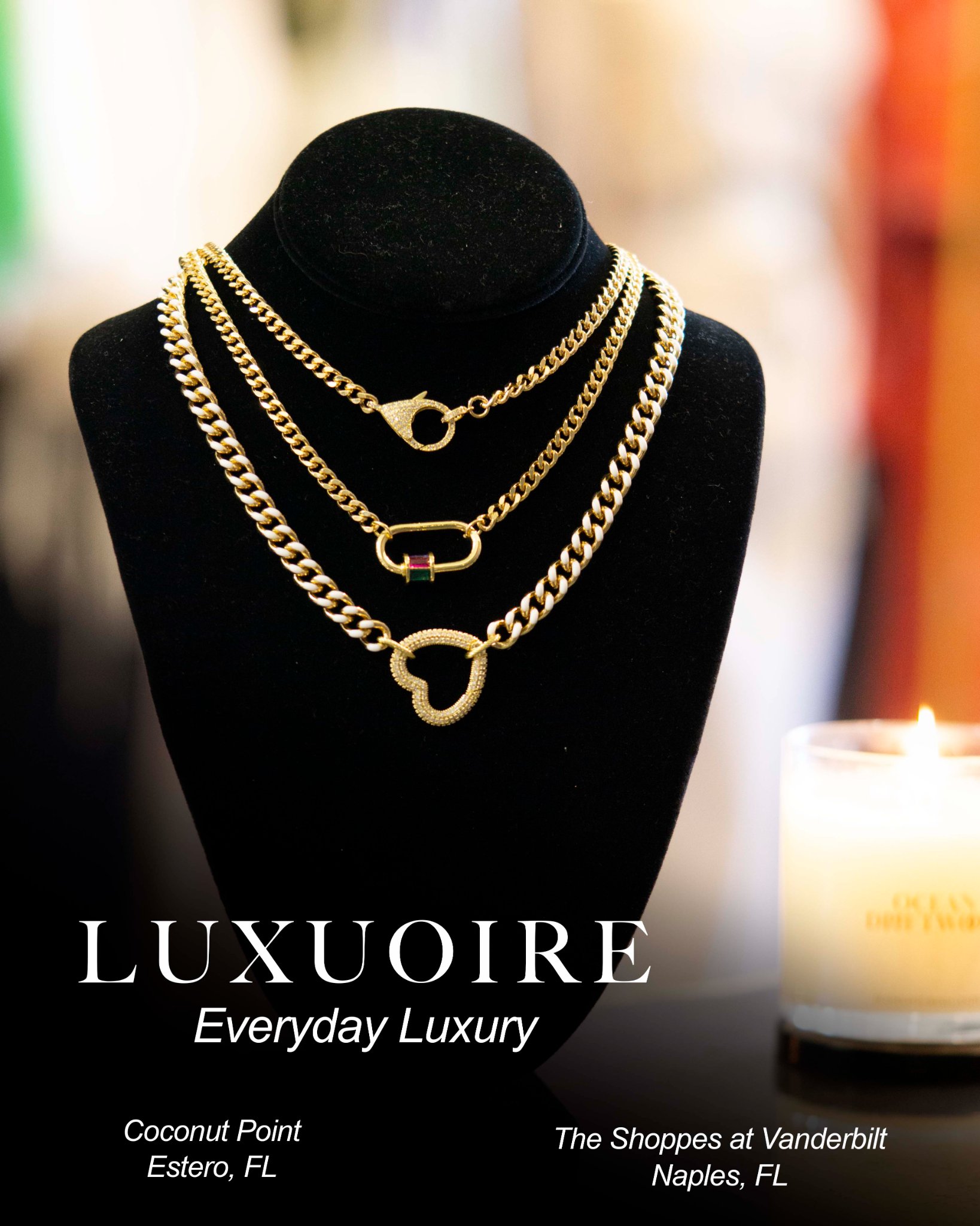 "Luxuoire specializes in carefully curated contemporary clothing and accessories for the modern woman. In addition, we handcraft home fragrance and beauty products, including candles, bath and body products, soap, and skincare. Too often we reserve our little luxuries for "the right occasion" rather than making every day extraordinary. Here at Luxuoire, we bring the luxury to your everyday life, so whether you are getting ready for a special evening out, or just enjoying a morning in, you can enjoy every moment."
