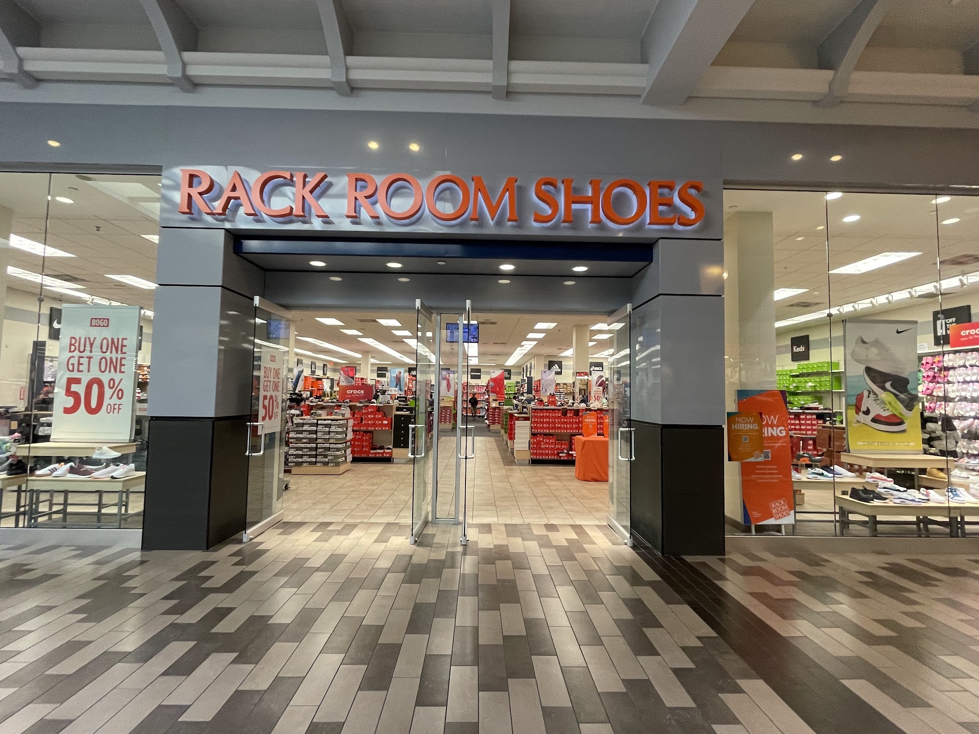 Rack Room Shoes offers a wide variety of styles and sizes at reasonable prices, often featuring promotions like buy one pair, get one 50% off. Customers appreciate the helpful sales associates who are knowledgeable about the products. One standout employee, Matthew, is frequently mentioned for his exceptional service. He is described as patient, kind, and professional, making shopping a pleasant experience even during busy times. Customers have shared positive experiences of him assisting with product inquiries and concerns, such as waterproofing sneakers for park visits. While the store can be busy with long checkout lines, overall, shoppers leave feeling satisfied with their purchases and the assistance they receive.