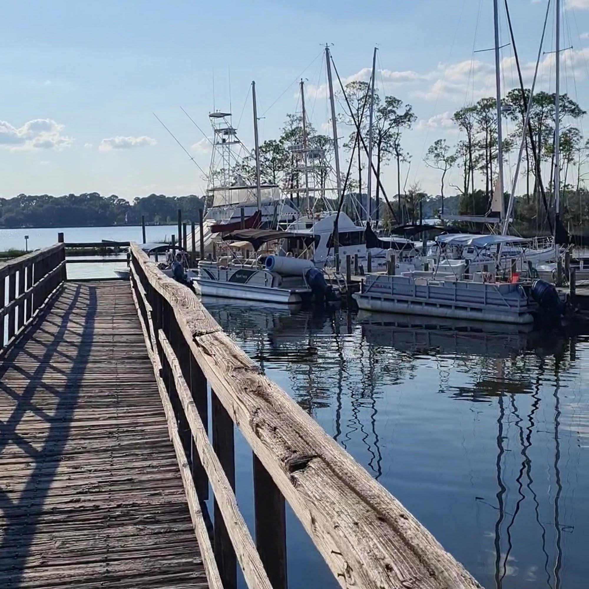 Bluewater Bay is a great marina with a rustic open air atmosphere and excellent restaurants. The service is not stellar but the shrimp are great and oysters are ok. Good linguini, vanilla ice cream drizzled with chocolate and fresh fruit plus cheeses are found at the perfect breakfast bar. Pleasant servers check back frequently to make sure all is ok. Kids and lots of ppl enjoy the fun spot, karaoke and bands that play on the weekend. It is a great place to watch the sunset.