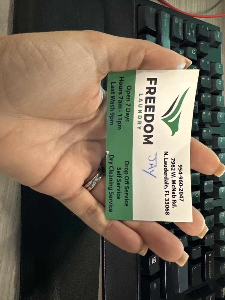 Freedom Laundry is a full-service laundromat that offers a clean, spacious, and comfortable environment for customers to wash and dry their clothes. The facility features state-of-the-art coin-operated washers and dryers, ensuring a quality laundry experience. Customers appreciate the friendly and professional staff, who take pride in their work and provide helpful assistance. The atmosphere is lively, enhanced by music that adds to the enjoyable experience of doing laundry. Amenities include free Wi-Fi, large flat-screen televisions, and the option to purchase laundry supplies. For added convenience, Freedom Laundry offers a drop-off service for those who prefer to have their clothes cleaned for them. The attendants are known for their courteous service and attention to detail, making sure everything is organized and running smoothly. Overall, Freedom Laundry is highly recommended for its cleanliness, great customer service, and the positive energy that fills the space. Whether customers are washing their own clothes or utilizing the wash, dry, and fold service, they can expect a pleasant and efficient laundry experience.