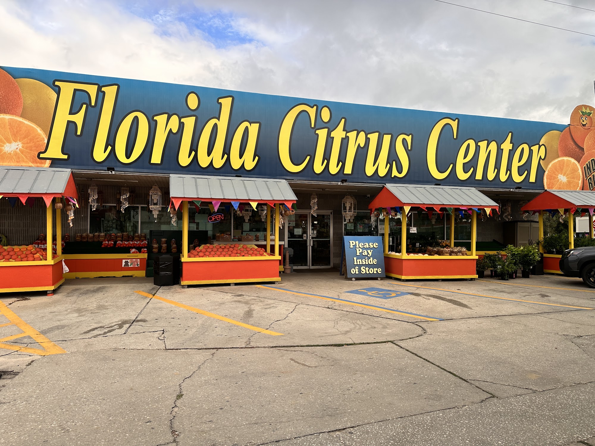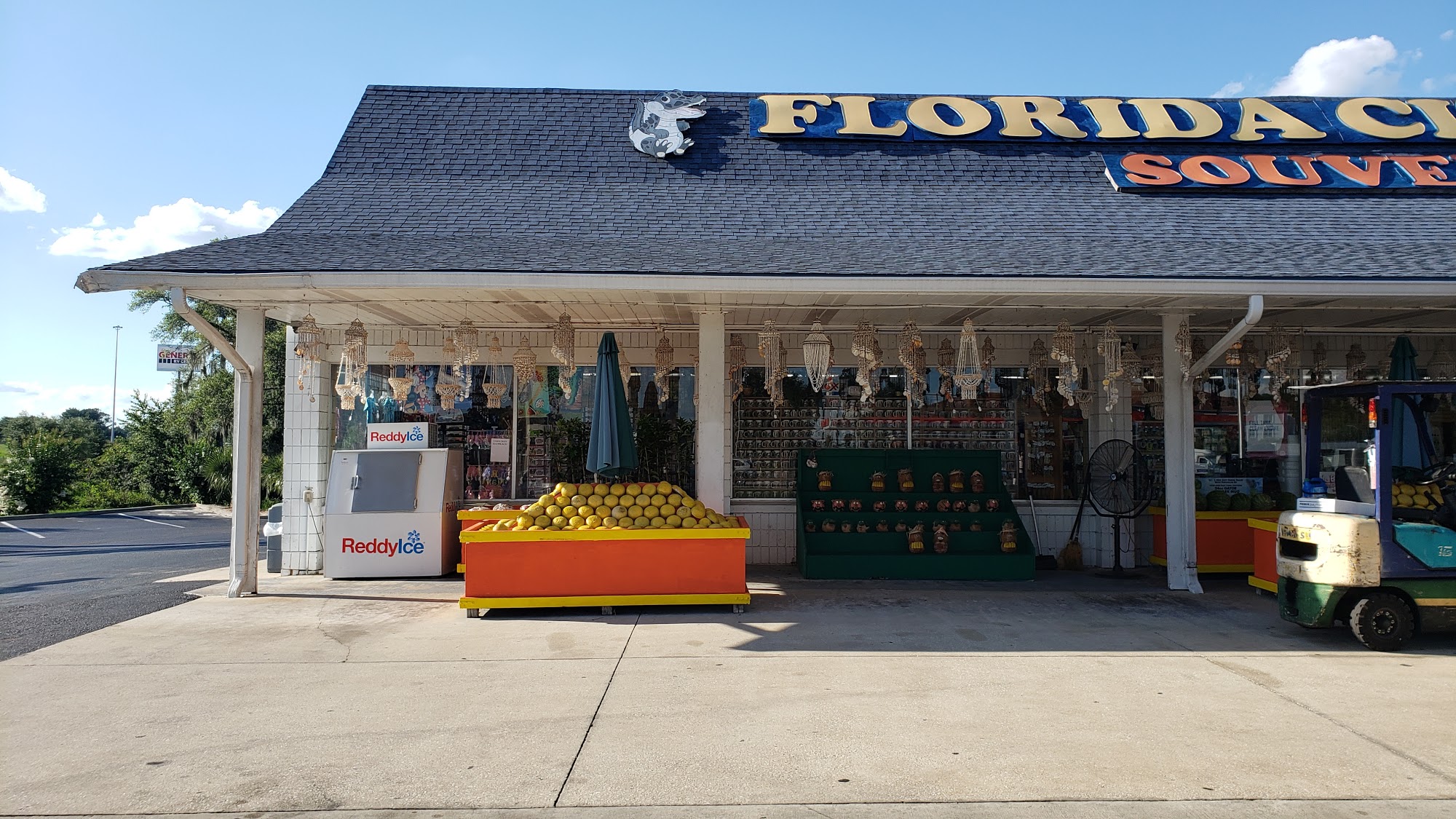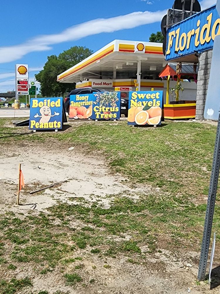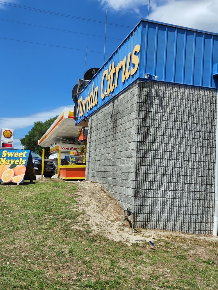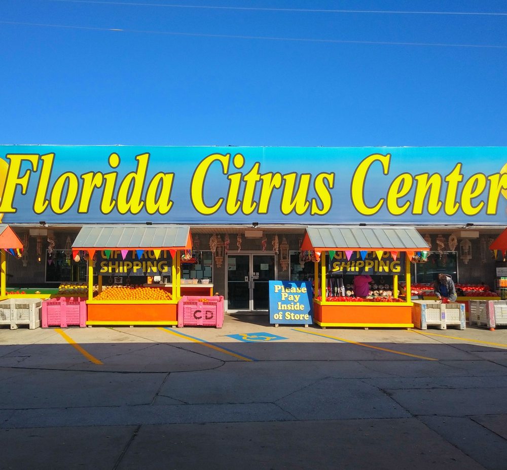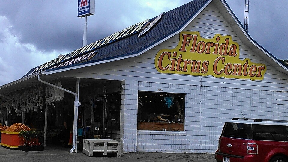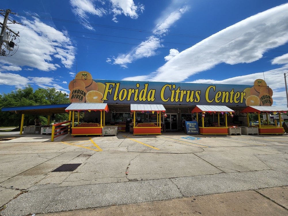 Florida Citrus Center Inc. is a souvenir shop offering many souvenirs, tokens, seashell items, and t-shirts. It sells some local food products, including oranges, grapefruit, and fresh orange juice, with options for tasting. Visitors can see cute baby alligators and a tank with small reptiles. The shop also has orange and lemon plants. There is currently limited access due to ongoing road construction. Some products are noted as being made in China, and pricing on certain items like juice and fruit can be seen as high or misleading. The bathrooms are clean.