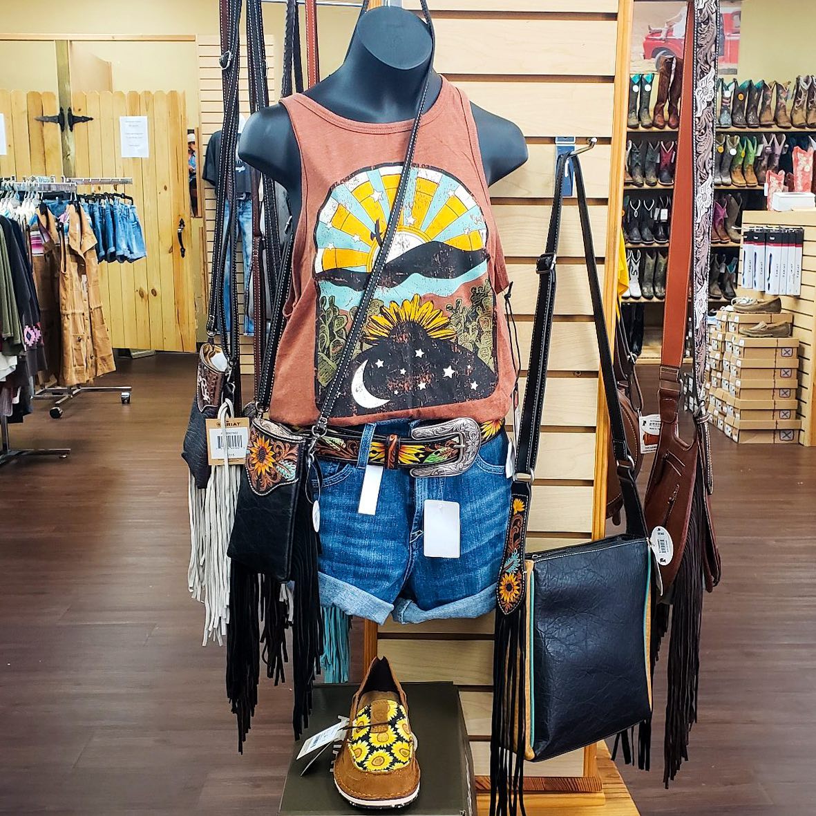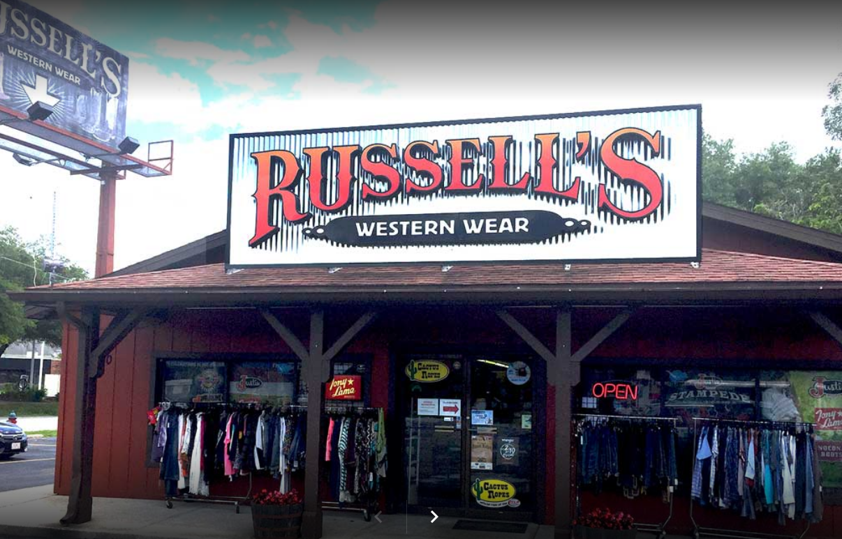 Russell's Western Wear is Florida's favorite boot store for work, western, or weekend wear, operating for the past 50 years. It offers a great selection and outstanding customer service from locally owned boot experts. The store carries top brands like Justin, Ariat, Durango, Tony Lama, and Wrangler, with boots available right on the shelf to try on. It has work boots with all safety features, from steel toe to waterproof and slip resistance. The store also carries a full assortment of jeans and apparel for men and women, including western wear, flame resistant clothing, t-shirts, ball caps, and Costa sunglasses. Staff are knowledgeable, helpful, and patient, helping customers find the right fit and product. The price and quality are noted as better than others, making for a fun, quick, and easy shopping experience that leaves customers very happy and likely to return.